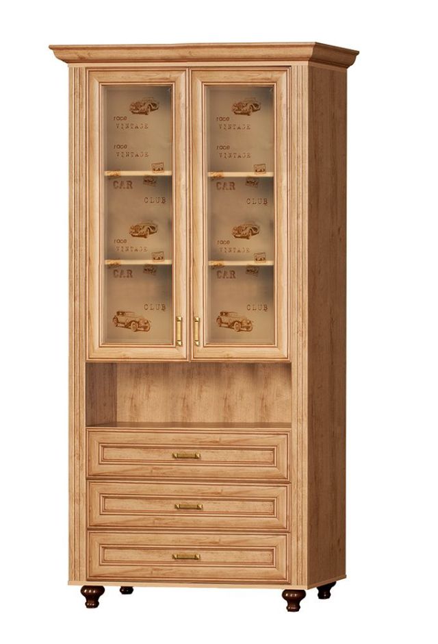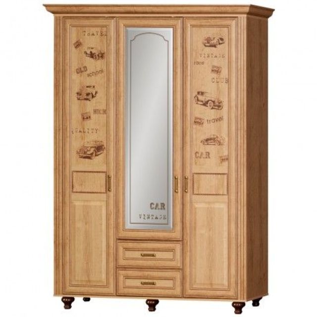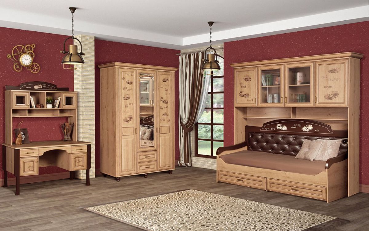 Мебель для детской комнаты «Ралли» – вариант мебели для мальчика, выполненной на базе модулей «Алиса». В основу дизайна модели положена тема гонок и ретро-машин, которыми украшены фасады. Это удачная альтернатива морской темы, так популярной в классической мебели. Кроме того в дизайне угадываются черты стиля Кантри, благодаря использованию древесного декора и патины на фасадах.