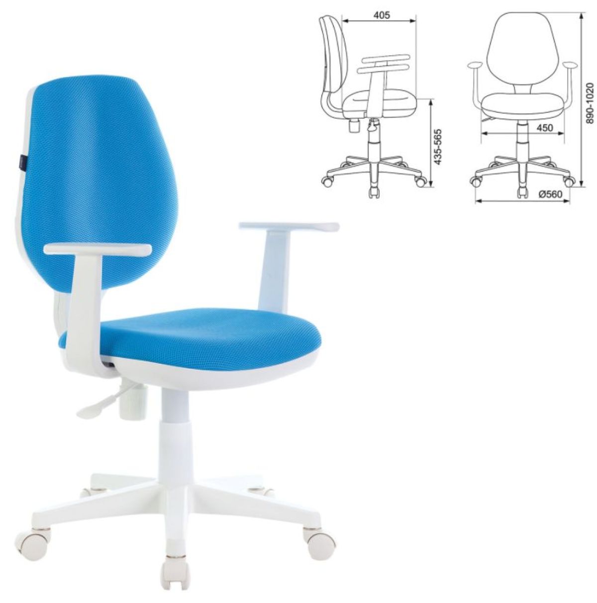 Кресло BRABIX "Fancy MG-201W", с подлокотниками, пластик белый, голубое, 532411, MG-201W_532411