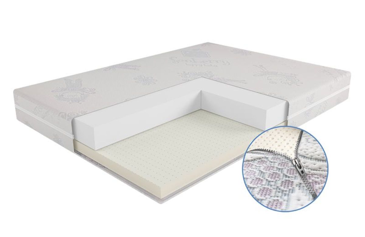 Двусторонний матрас SWEET из анатомической пены Orto Flex и натурального латекса – для правильного формирования позвоночника ребенка: с одной стороны - пена повышенной плотности Orto Flex упруго поддерживает тело во сне; с другой - натуральный латекс снимает мышечное напряжение, способствует быстрому засыпанию.