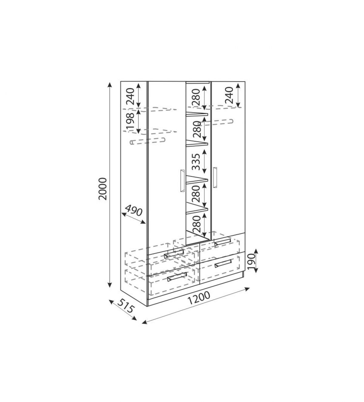 Размер (Ш*Г*В): 1200*515*2000 мм