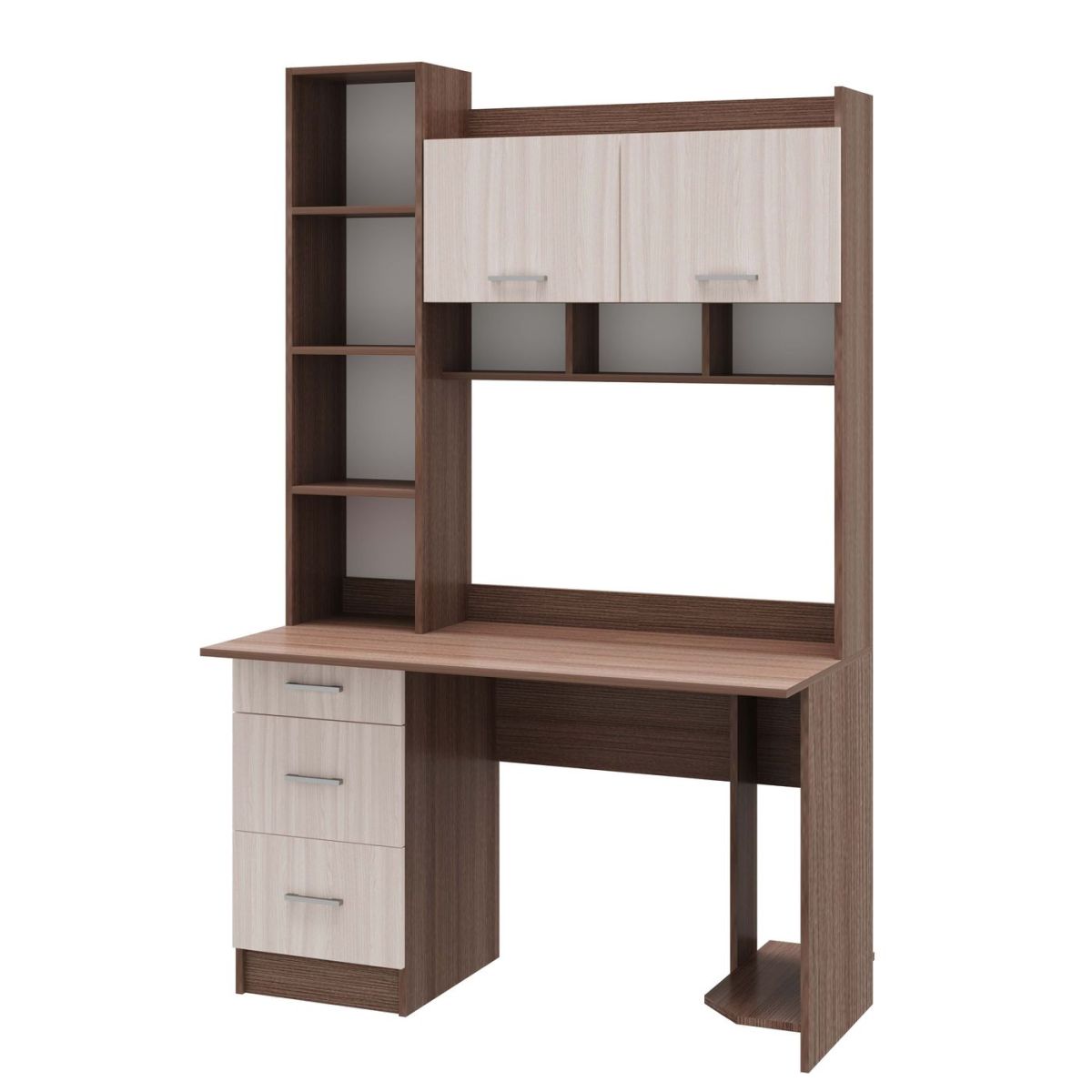Письменно-компьютерный стол №5 с 3-мя ящиками на роликовых направляющих и надстройкой.