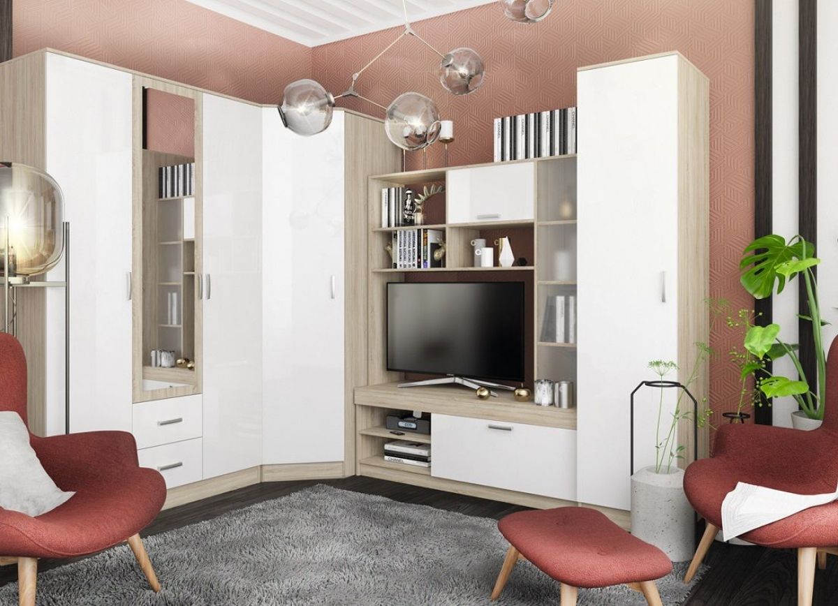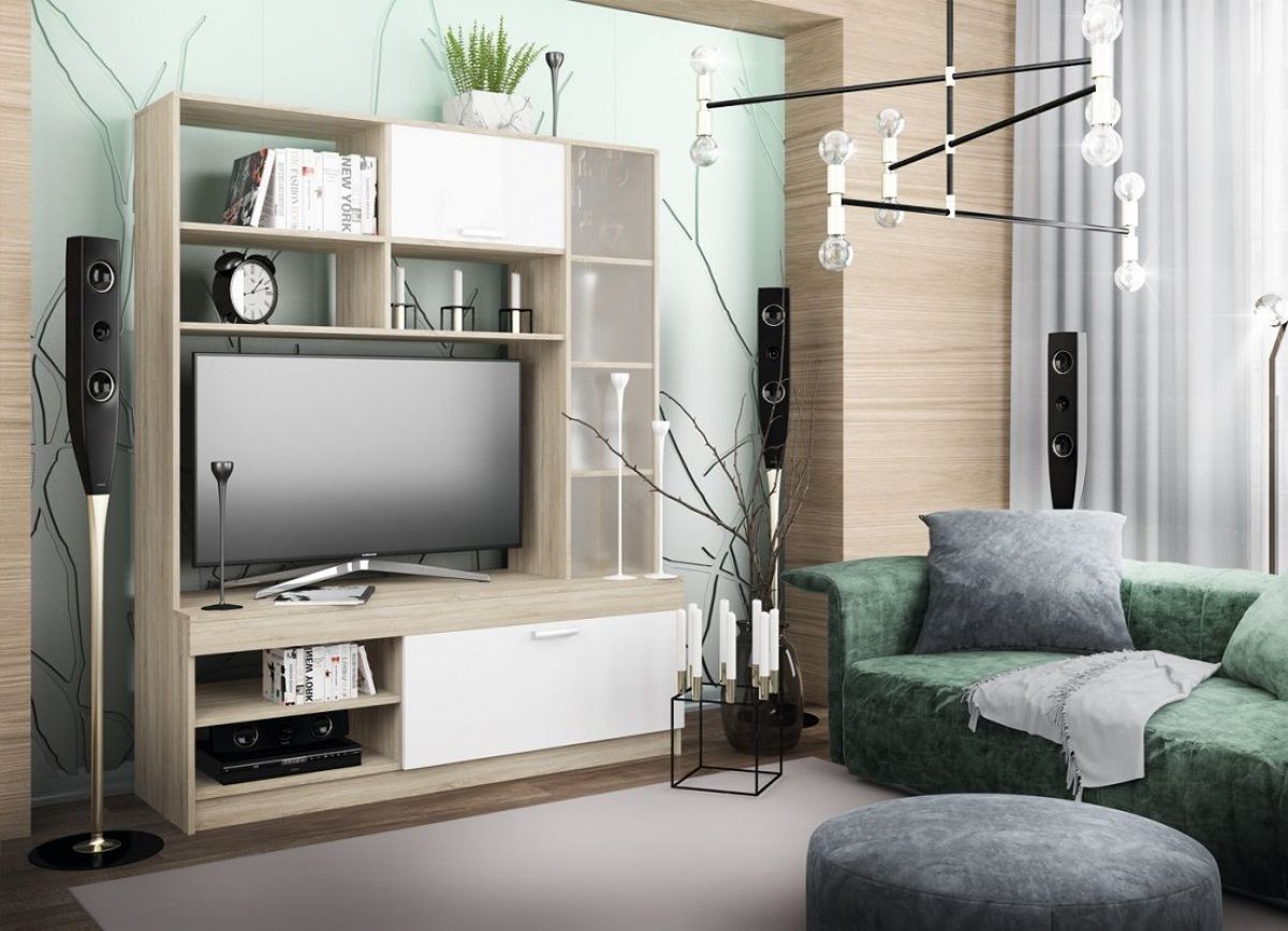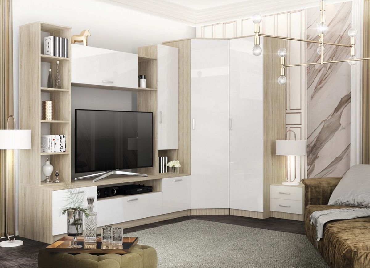 Современный дизайн стенки придает ей особую элегантность. Несомненно, стенка привлечет к себе внимание ваших гостей и станет украшением гостиной.