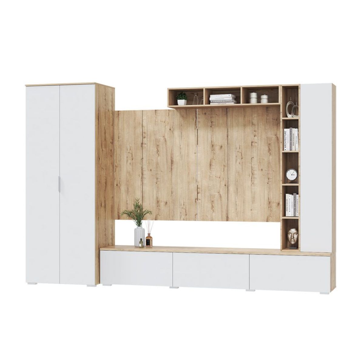 ТВ тумба Сканди с 3-мя дверками, дуб бунрати/белый 1 шт