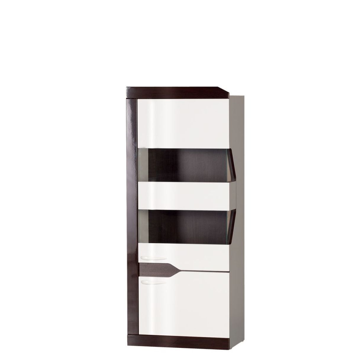 Благодаря сочетанию 2-х контрастных декоров – белого и венге с глянцевыми и матовыми поверхностями, а также оригинальному дизайну двухсторонних стеклянных витрин и декоративному приему стыковки модулей, «Ронда» выглядит эффектно и стильно. Завершают внешний облик белые глянцевые ручки итальянского производства.