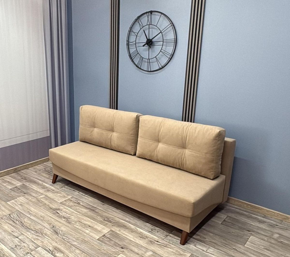 Прямые пропорциональные линии этого дивана актуальны во все времена. Механизм трансформации «Пантограф» (тик-так) позволяет формировать идеально ровное спальное место. Внутри расположен вместительный бельевой короб для постельных принадлежностей.