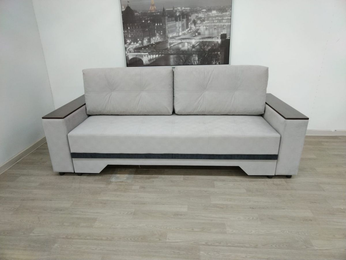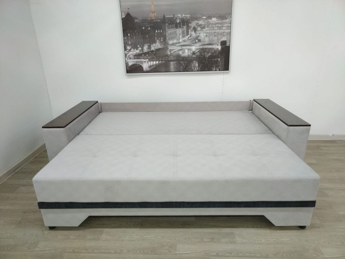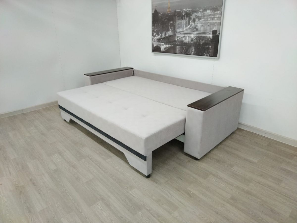 Прекрасное сочетание элегантности и изящества. Подлокотники с декоративными накладками делают его безупречным для любого интерьерного решения. Механизм трансформации «Пантограф» (тик-так) позволяет без особых усилий формировать ровное спальное место. Так же имеется вместительный короб для постельных принадлежностей.