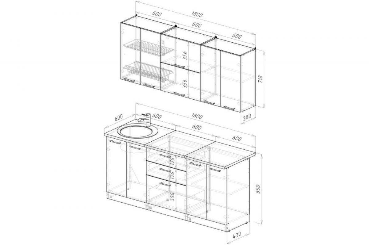 Ширина: 1800 мм; Глубина: 600 мм (со столешницей)
