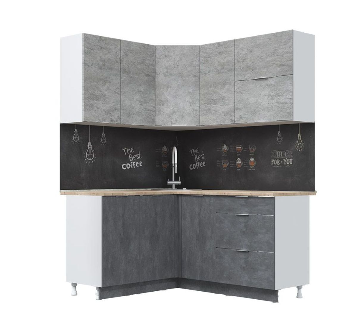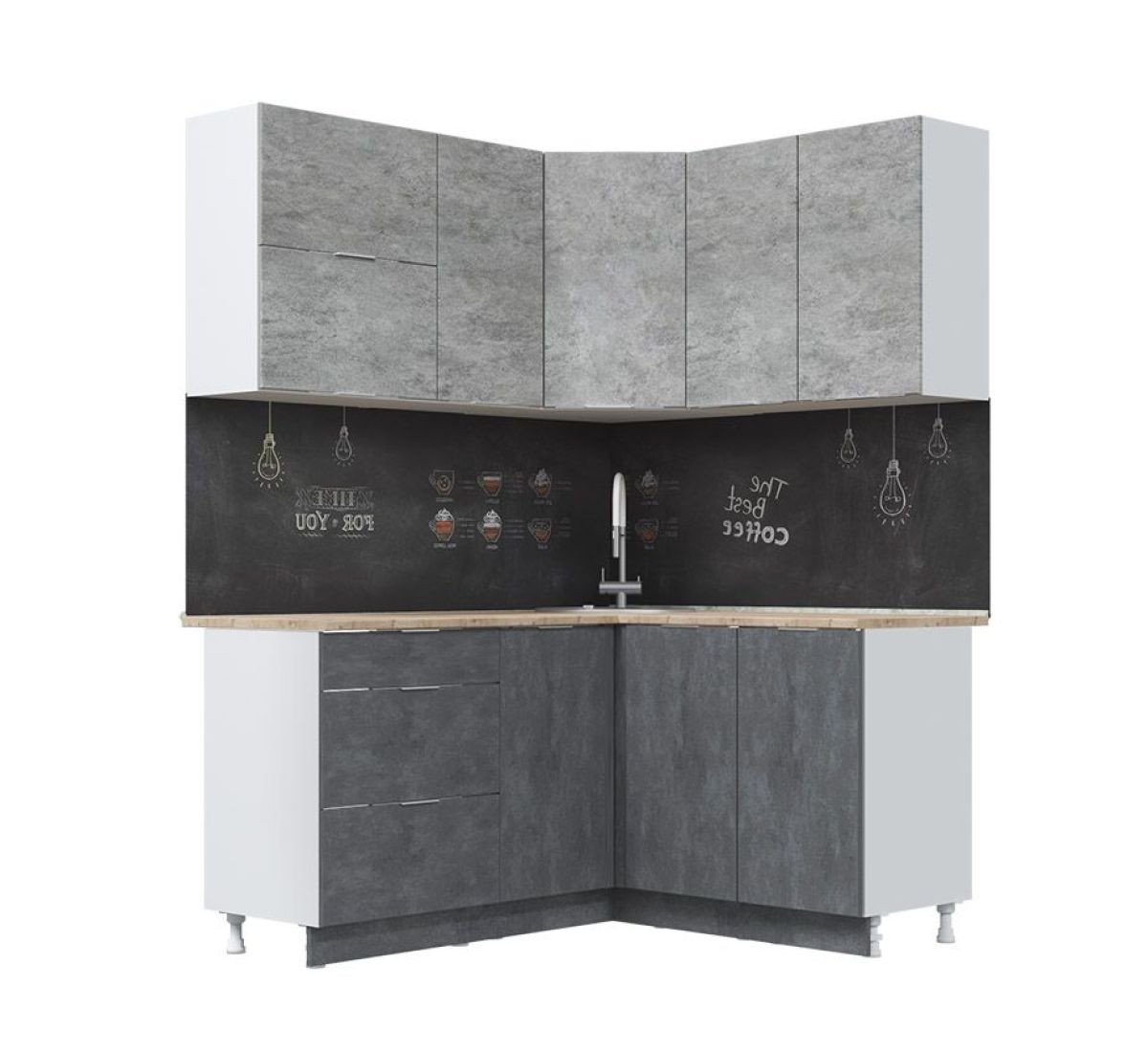 Кухонный гарнитур Асти-бетон 1,4*1,6 (б/с 800)