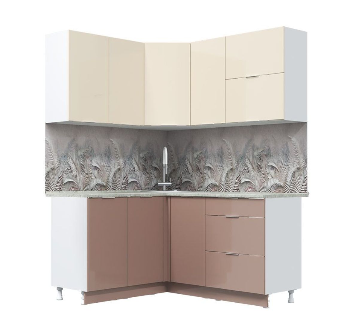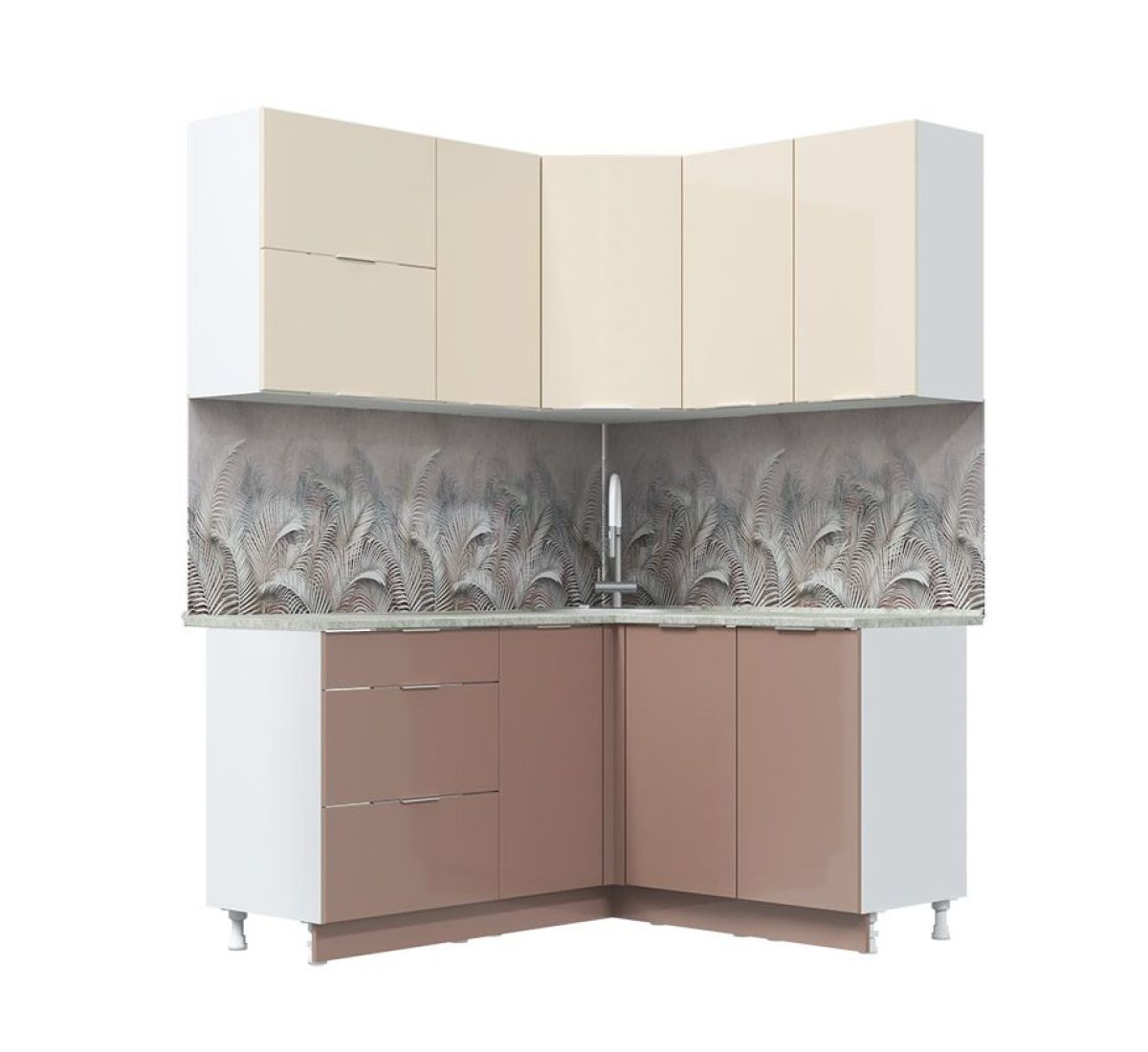 Кухонный гарнитур Асти-латте угловой 1,4*1,6 (б/с 800)