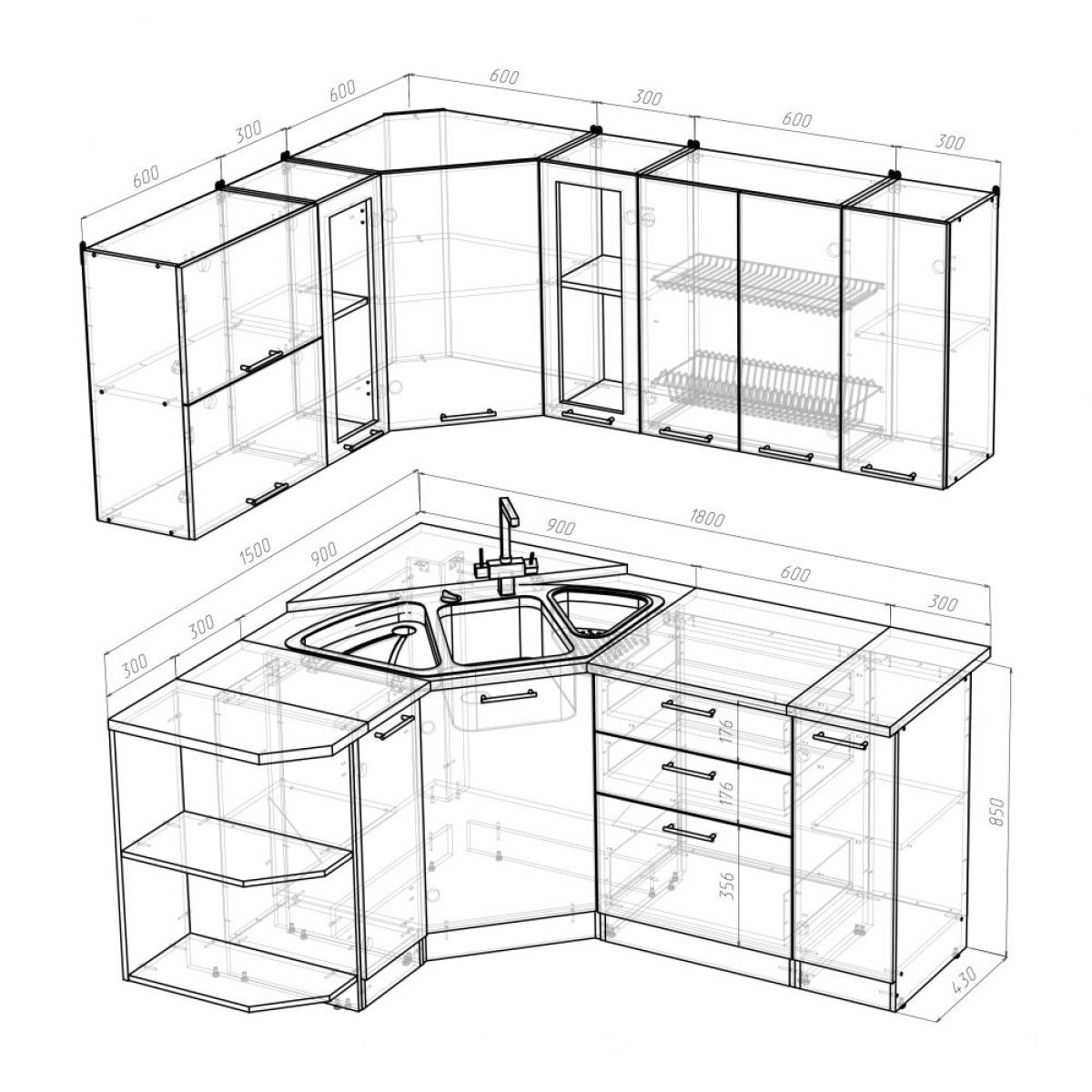 Ширина: 1500*1800 мм; Глубина: 600 мм (со столешницей)
