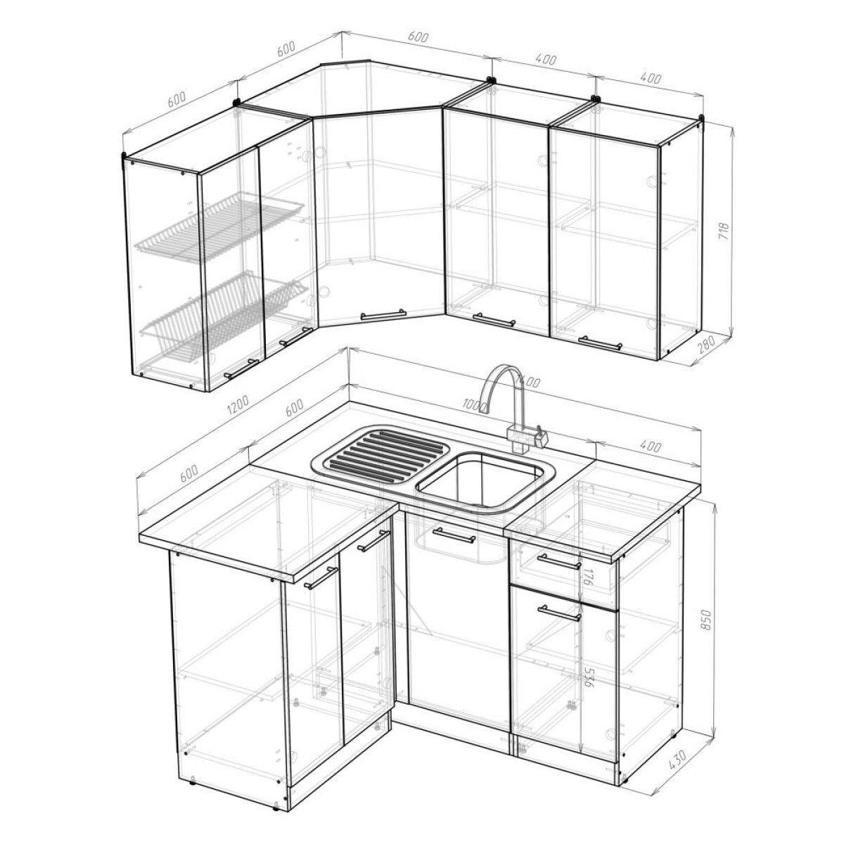 Ширина: 1200*1400 мм; Глубина: 600 мм (со столешницей)