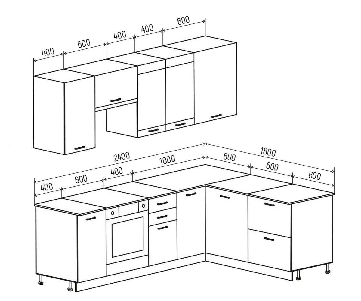 ТЕХНО Кухонный гарнитур угловой 2,4х1,8 м Компоновка №3