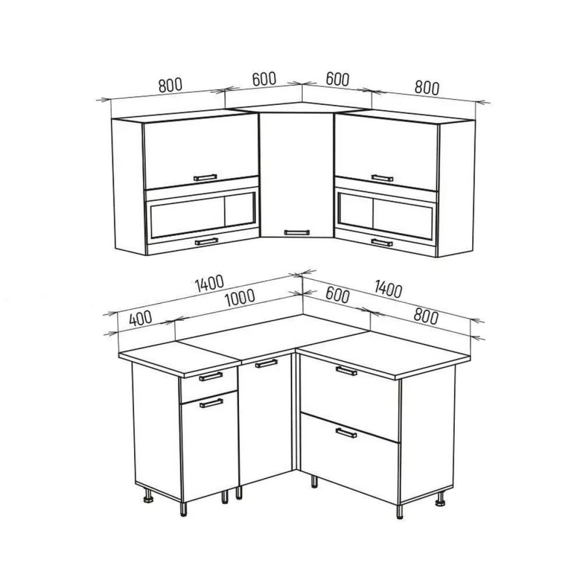 ТЕХНО Кухонный гарнитур угловой 1,4х1,4 м Компоновка №2