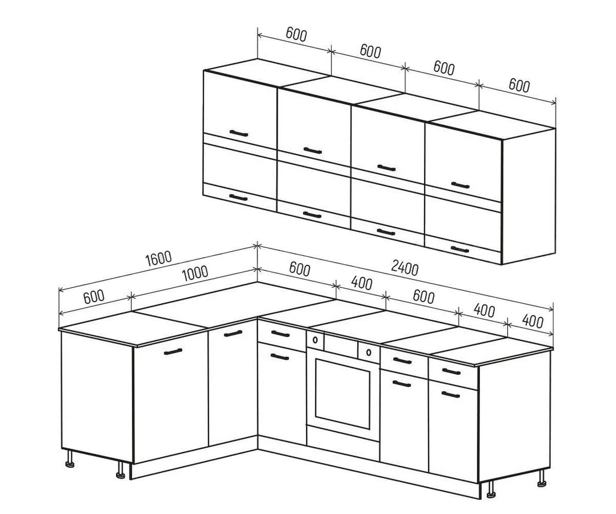 ТЕХНО Кухонный гарнитур угловой 2,4х1,6 м Компоновка №4