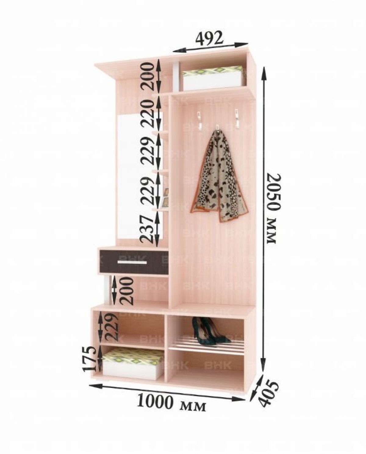 Габаритные размеры комплекта (ШхВхГ): 1600х2050х410