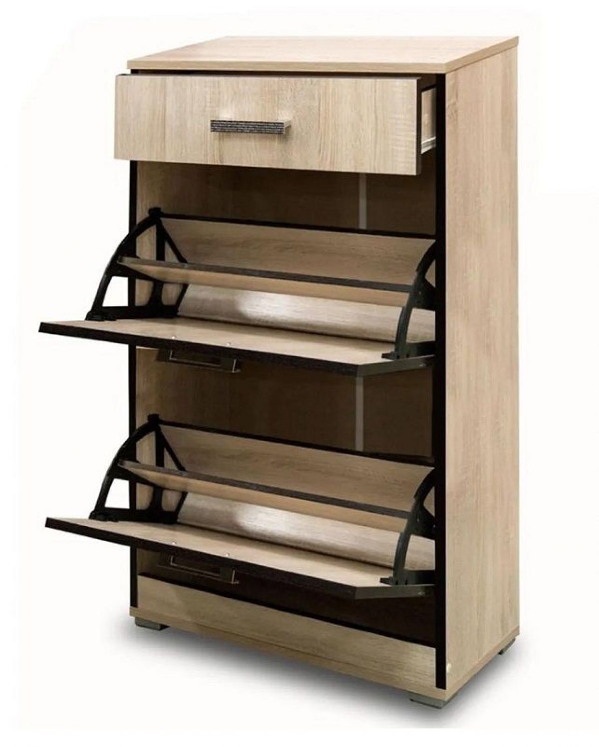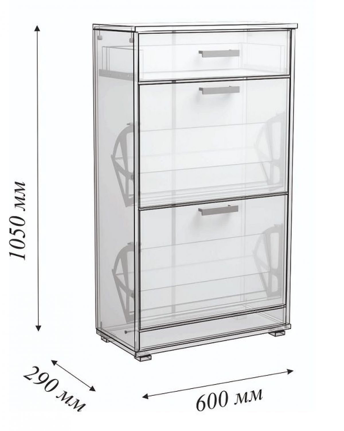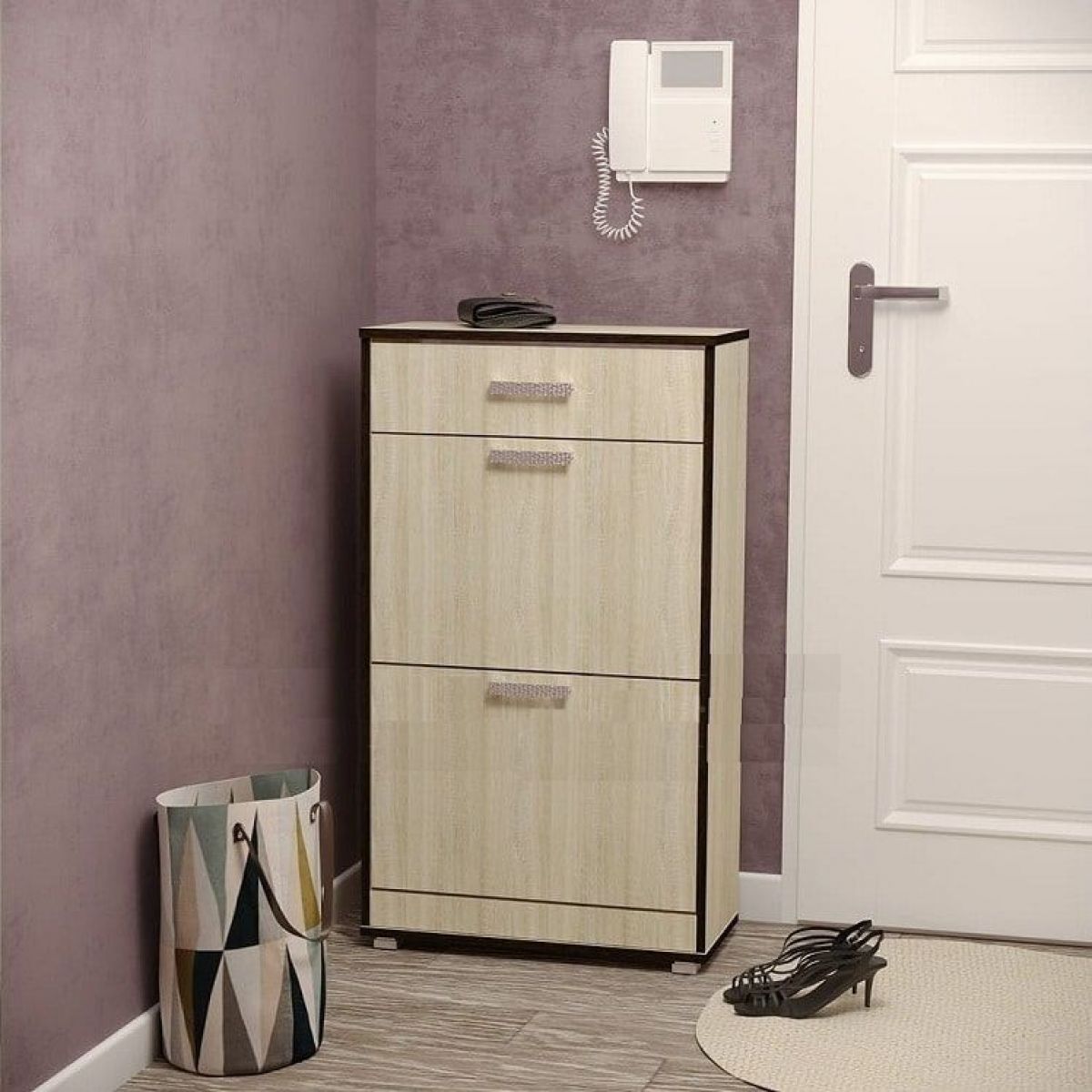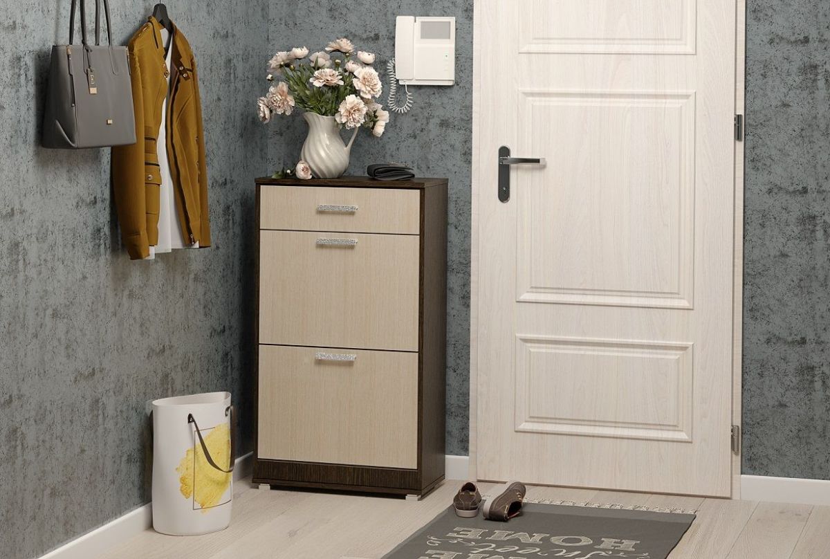 Обувница с двумя откидными ящиками для обуви и компактным ящиком для мелочей.