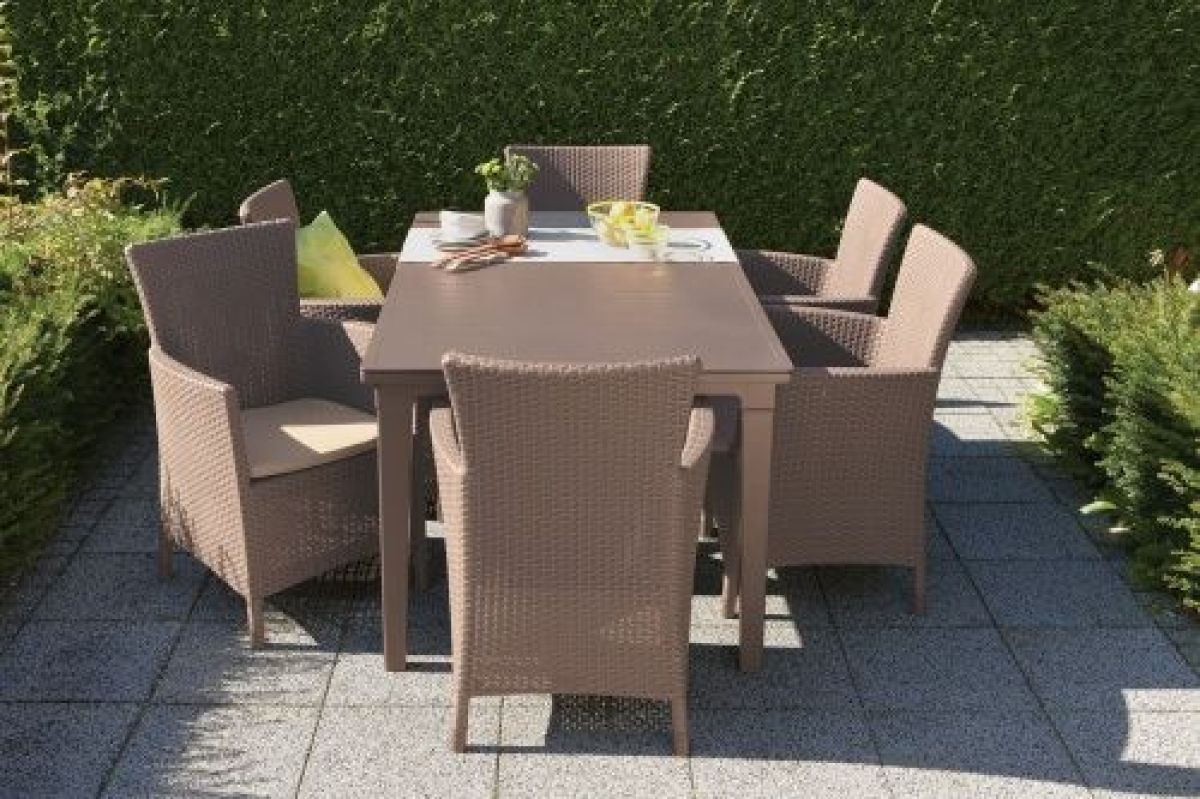 Iowa - это элегантное и комфортное садовое кресло, предлагаемое в комплекте с подушкой. Широкая гамма цветов и оригинальная, подобная ротанговой, фактура поверхности придется по вкусу даже самым требовательным пользователям. Изготовлено из стойкой к воздействию УФ-излучения и погодных условий высококачественной пластмассы. Очень просто собирается и легко чистится.