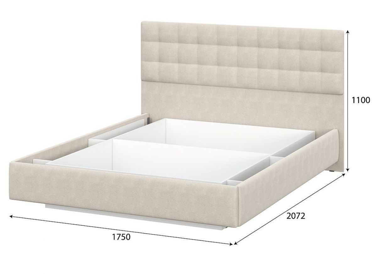 Кровать двойная №2 (универсальная 1.6х2.0) Серия 2 + основание (Белый/Бежевый ткань/Квадро Бежевый ткань)