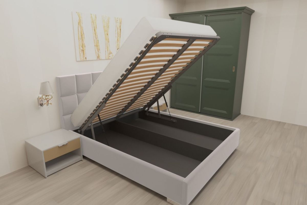 *Кровать с подъемным механизмом идет с центральной продольной траверсой (дополнительно усиливает ортопедическое основание), бельевое дно кровати состоит из 6 ящиков на липучках. Которые выдерживают достаточное наполнение (в пределах разумного ). Плюс липучек в том, что они фиксируют ящики в кровати образуя единный монолит и благодаря этому кровать не будет двигаться из стороны в сторону.