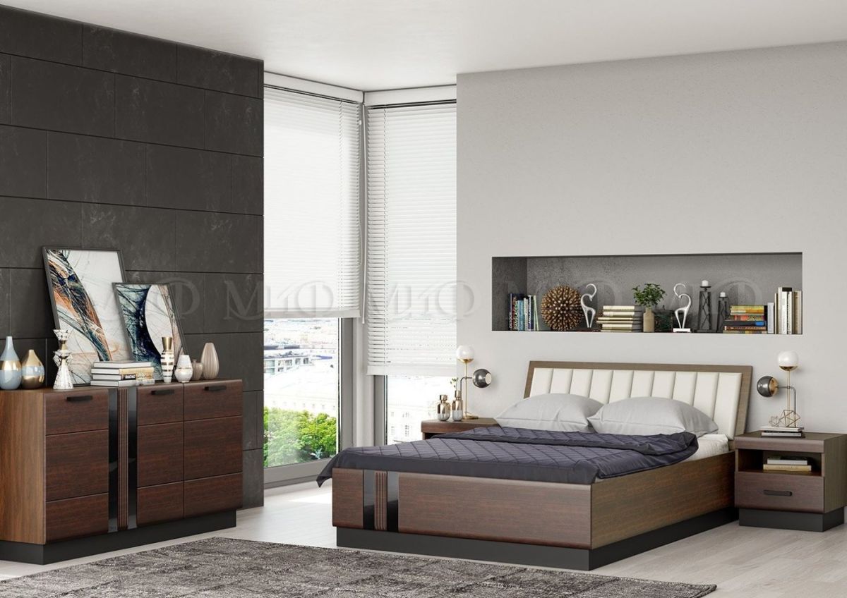 Кровать 1600х2000 Магнолия с основанием и ПМ (Дерево/орех)