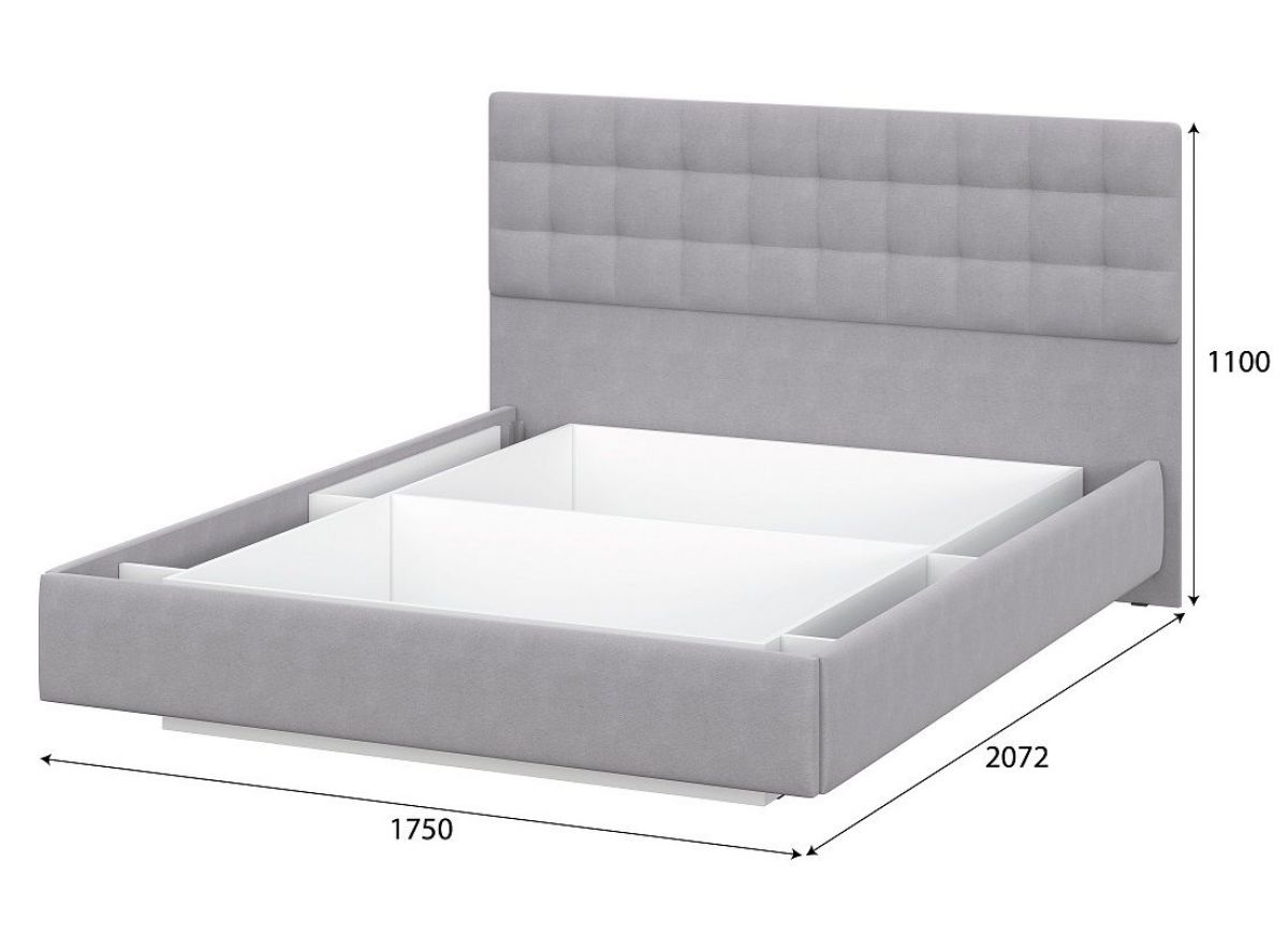 Кровать двойная №2 (универсальная 1.6х2.0) Серия 2 + основание с ПМ (Белый/Серый ткань/Квадро Серый ткань)