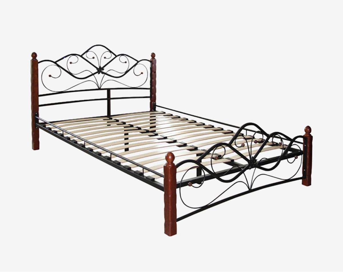 Кровать "Венера 1" КМД4.01 Черная (1400*2000) (ножки-махагон) с коваными элементами