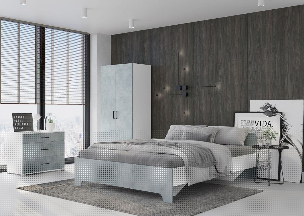 Кровать 1,6 VICTOR + основание (Белый-Бетон)