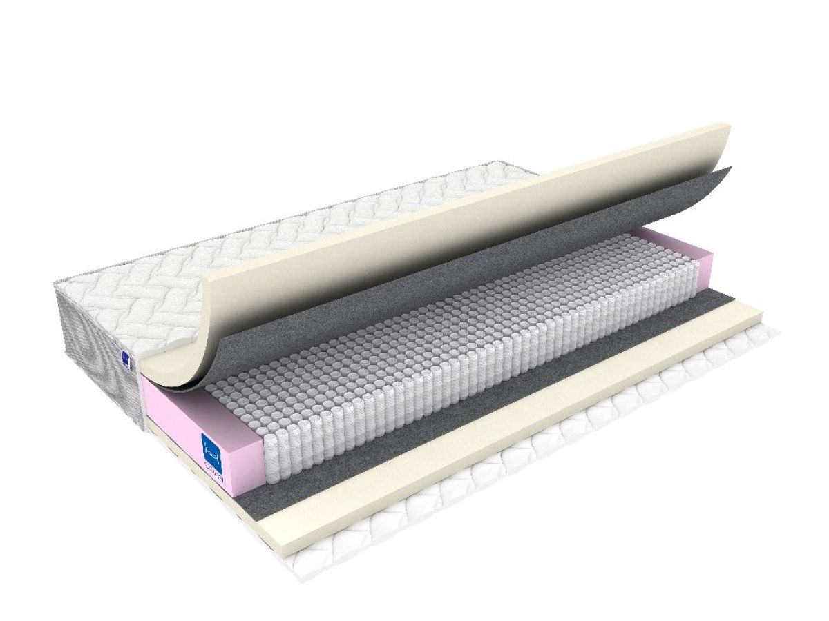 В состав этого матраса входят высококачественные материалы, которые гарантируют Вам комфорт и блаженство. В качестве наполнителя используется ортопедическая с эффектом памяти формы (мемориформ). Она точно повторяет форму тела, обеспечивая максимальный анатомический эффект. Способствует расслаблению мышц и хорошему кровообращению. Геовойлок защитит мягкий наполнитель от истирания о пружинный блок и не позволит ему разорваться.