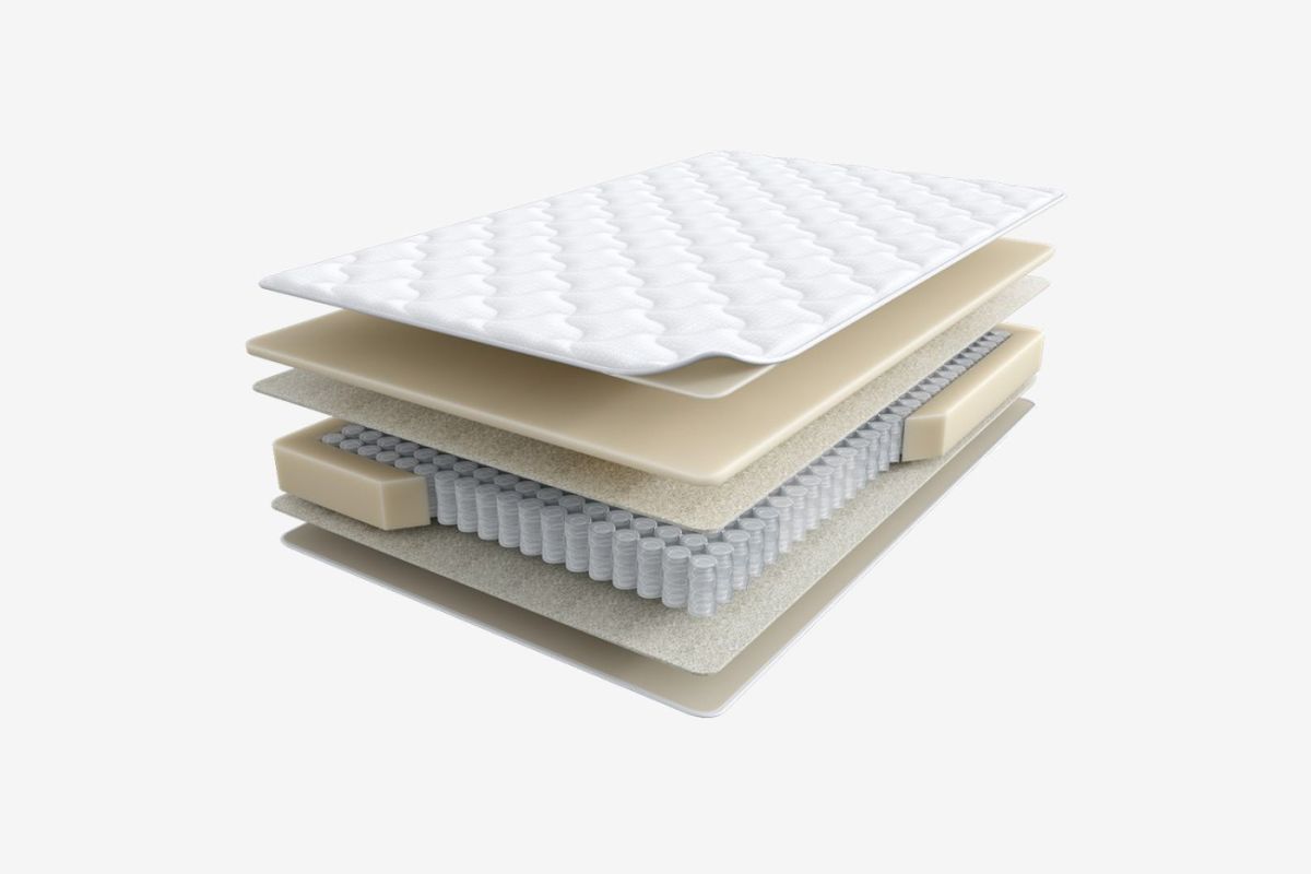 Несъемный чехол верх — трикотаж, стеганный на полиэфирном волокне и пене Orto Foam, нижняя часть — жаккард, стеганный на полиэфирном волокне.