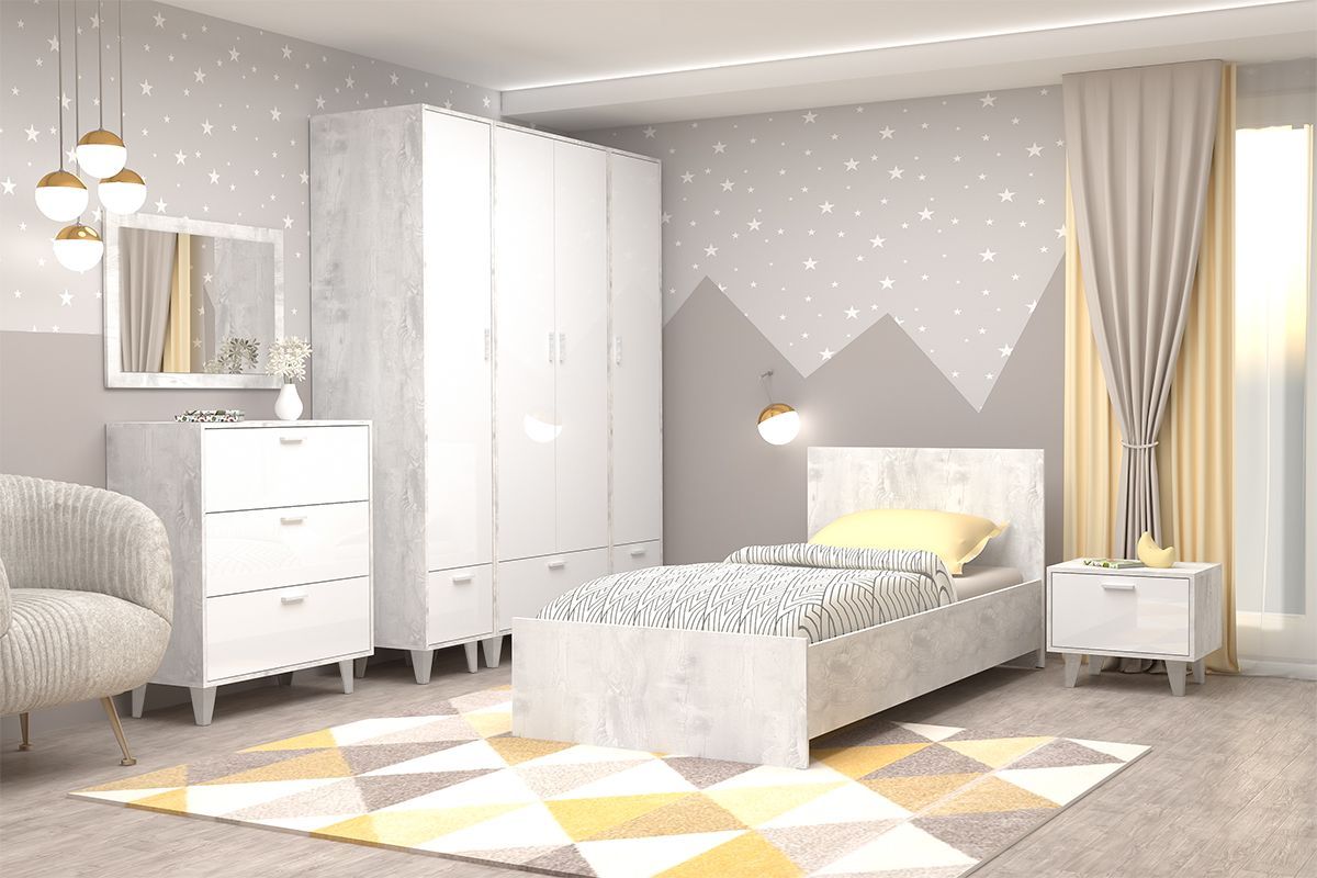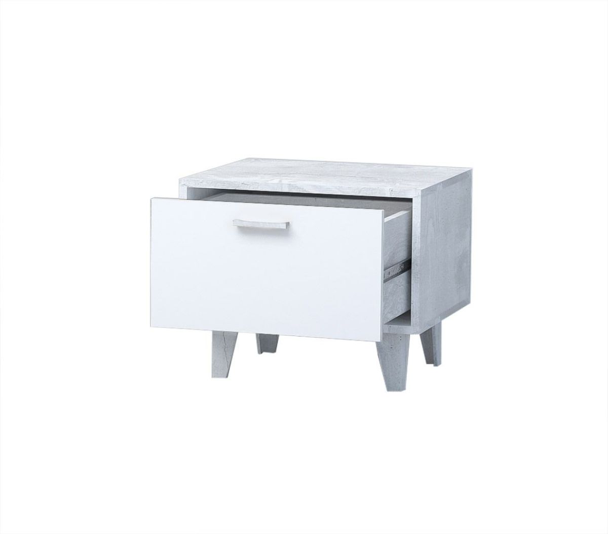 Тумба прикроватная Эго Т-5, (на ножках) Бетон светлый/Белый глянец