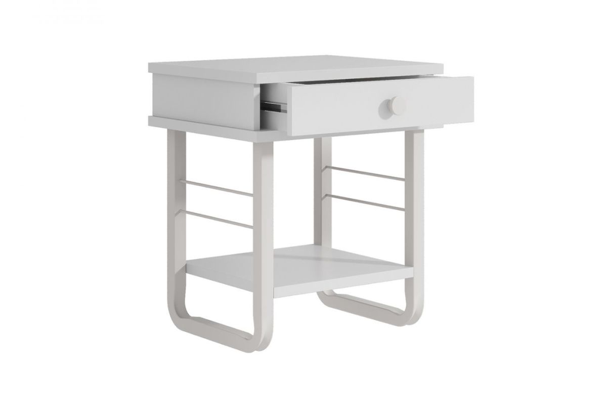 Тумба прикроватная "Грета" с коваными элементами, ЛДСП белый/металл белый