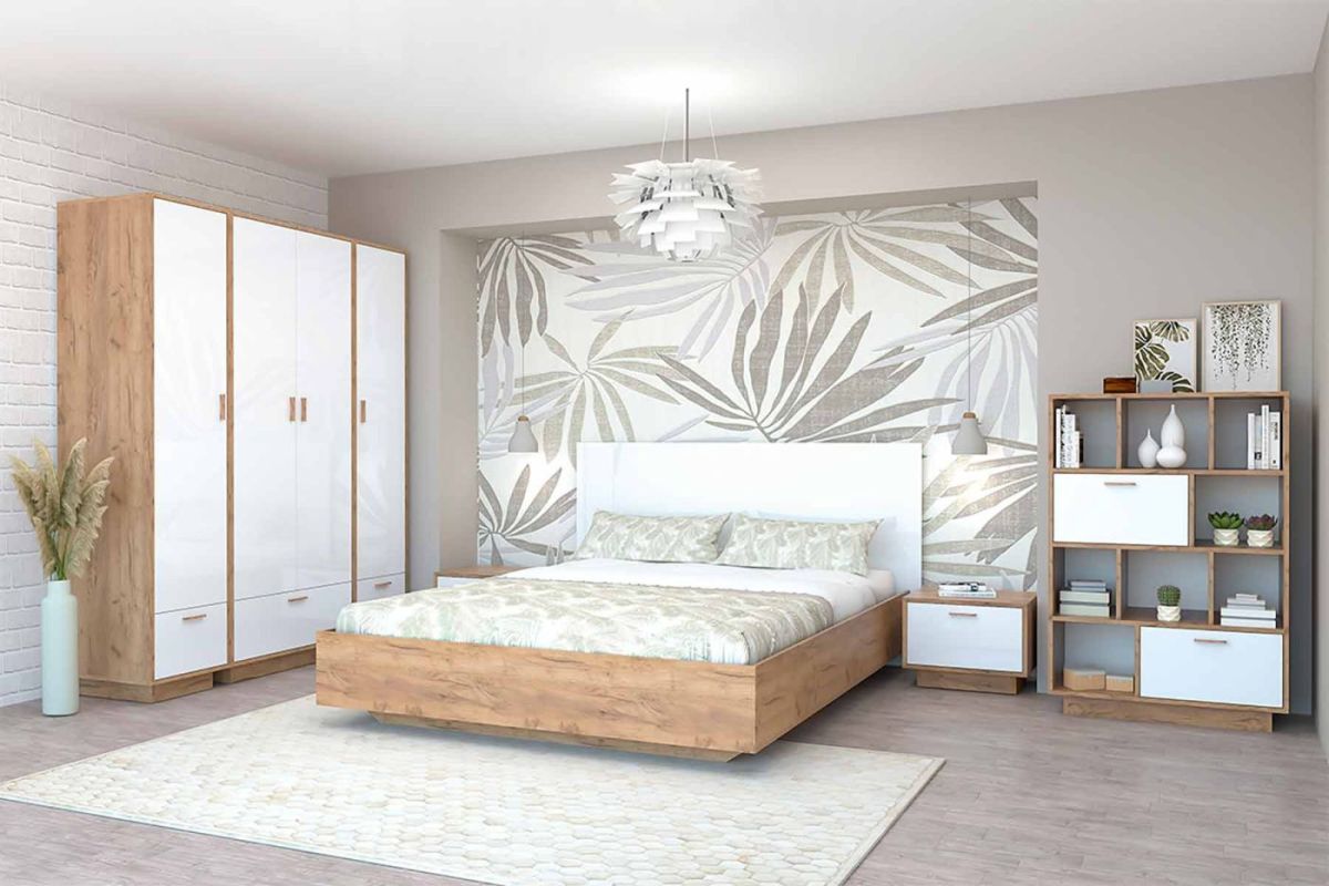 Модульная Спальня Эго (дуб крафт золотой/белый глянец) цоколь