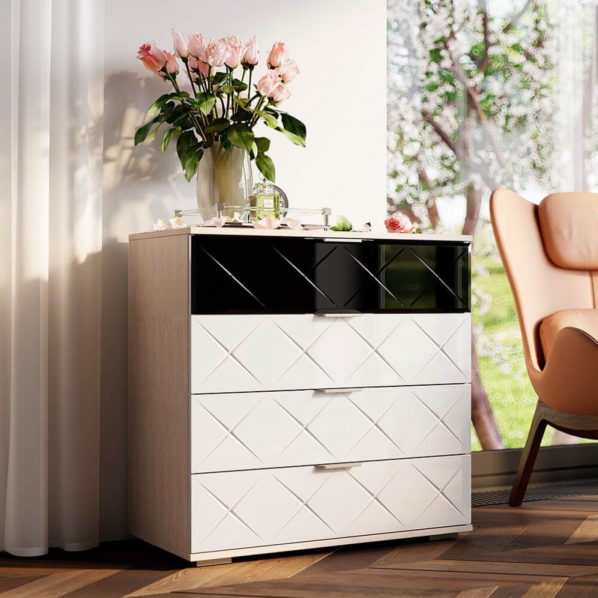 Модульная спальня «Кимберли» - это современная элегантная мебель с остроконечной фрезеровкой фасадов.