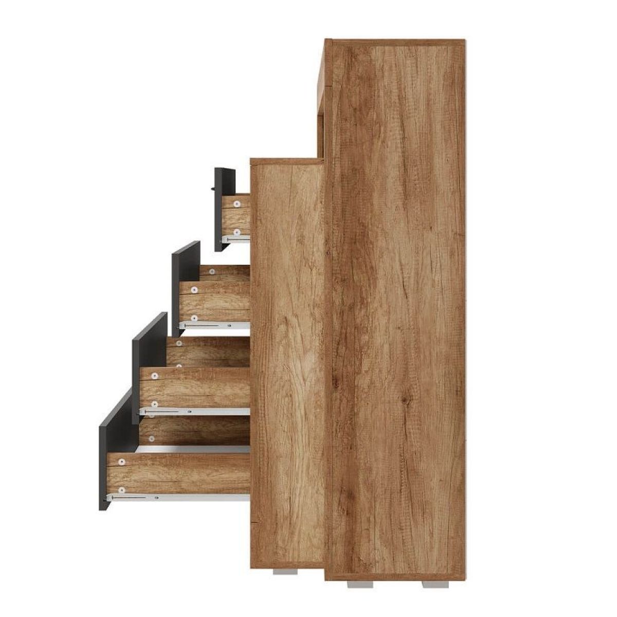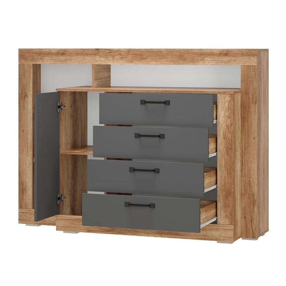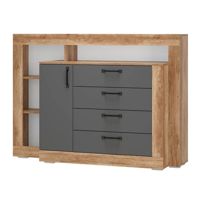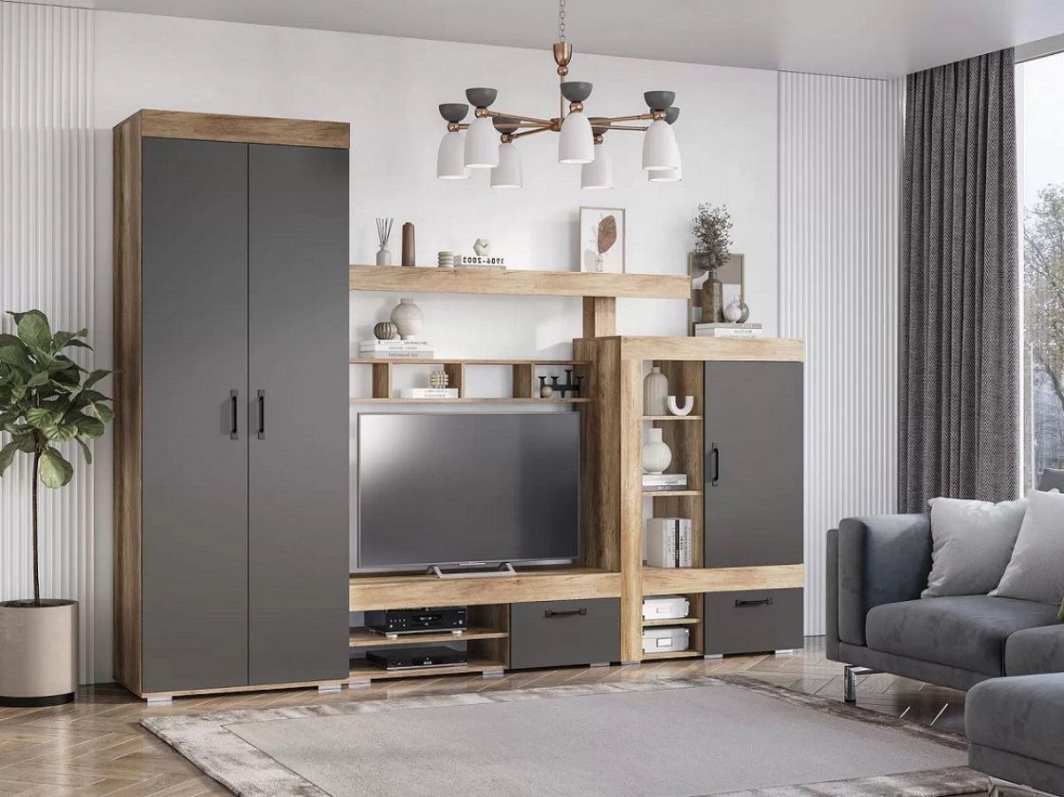 Коллекция "Прима" в модном декоре "дуб каньон/графит" удачно вписывается в городской индустриальный стиль и выглядит очень необычно и оригинально. Приятный корпус под дерево и матовые тёмные фасады - такое сочетание добавит комнате стиля.