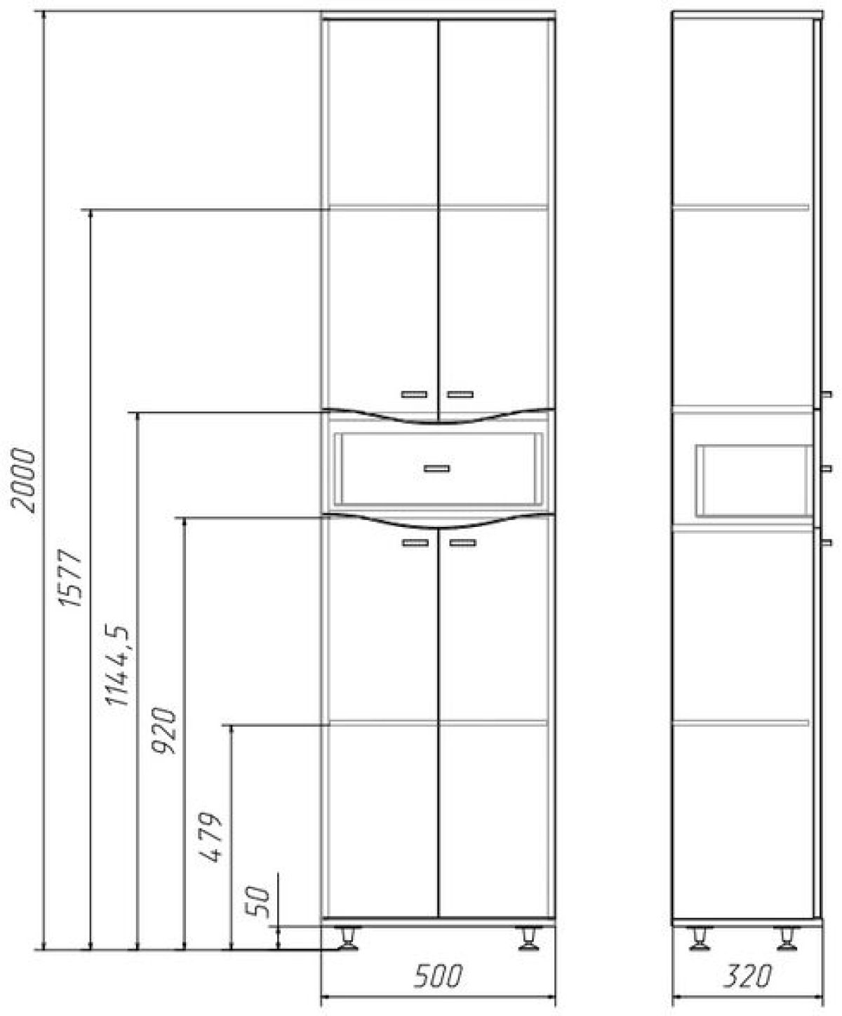 Пенал напольный 50 Волна с верхним ящиком В1 АЙСБЕРГ