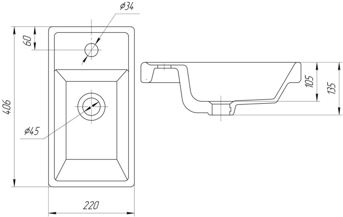 Диаметр слива: 4.5 см