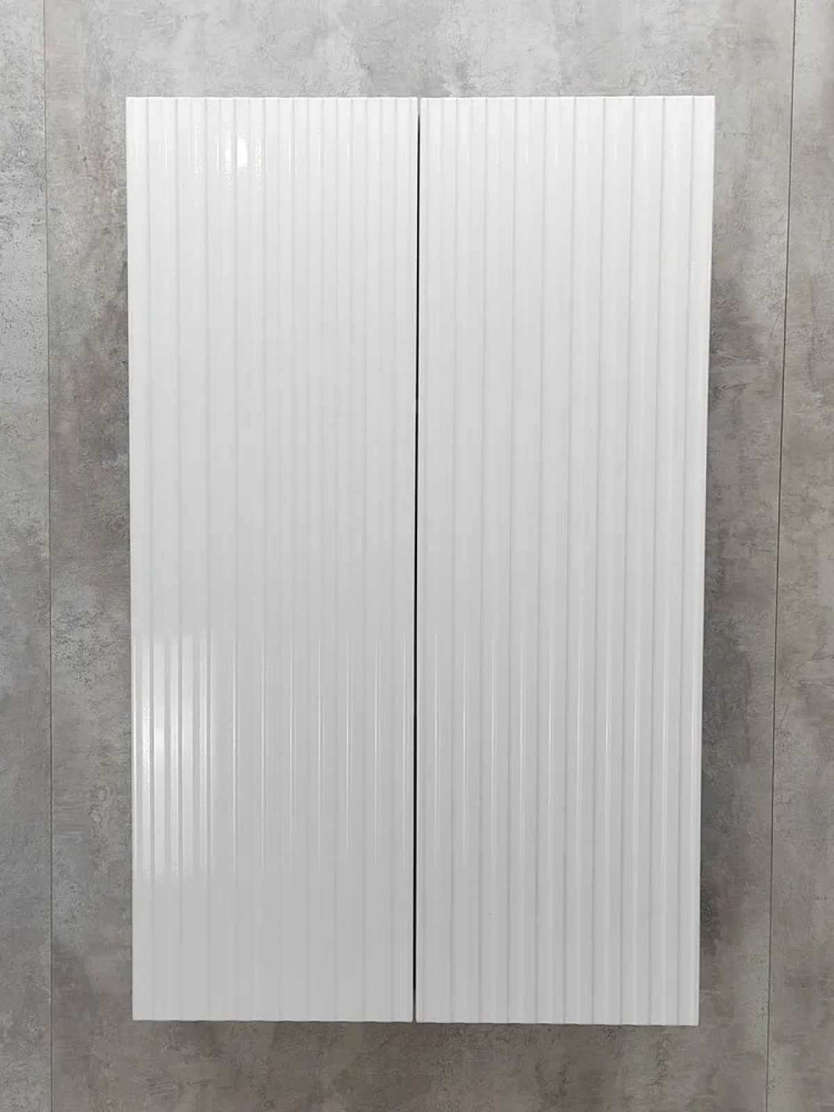 Белый шкаф с рифлёным фасадом будет отлично и стильно смотреться как в ванной, так и в туалете.