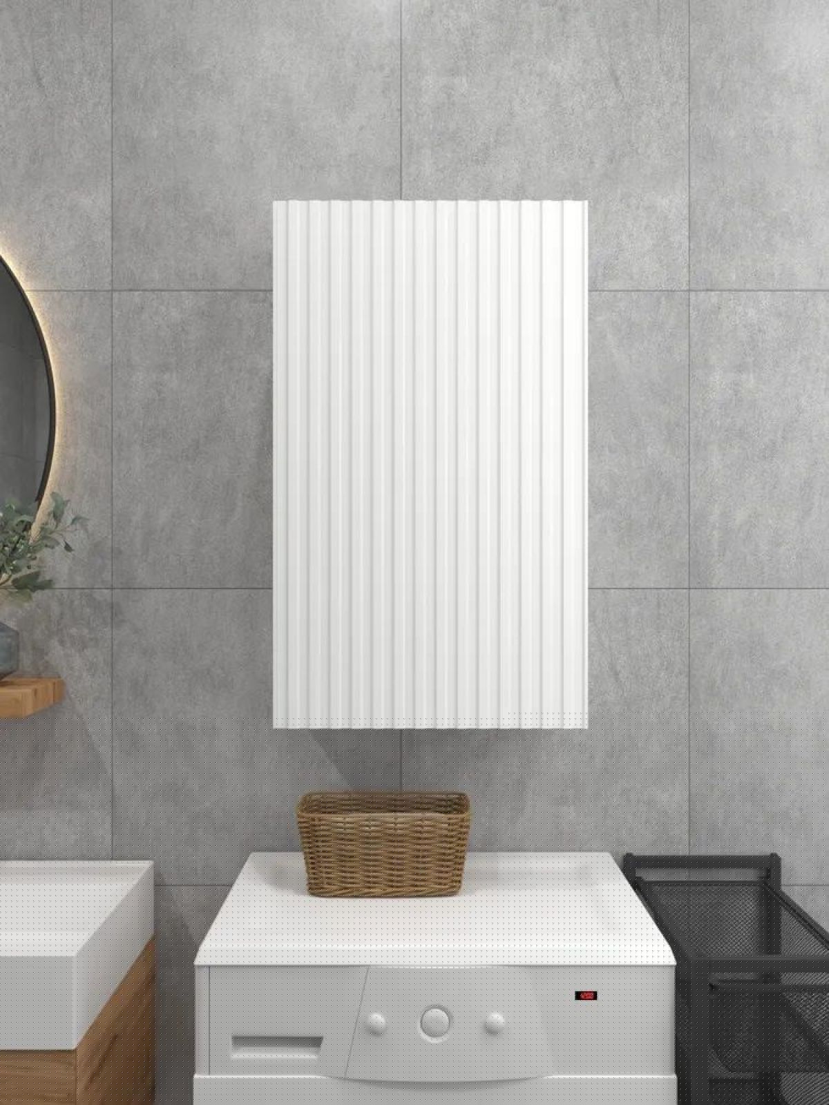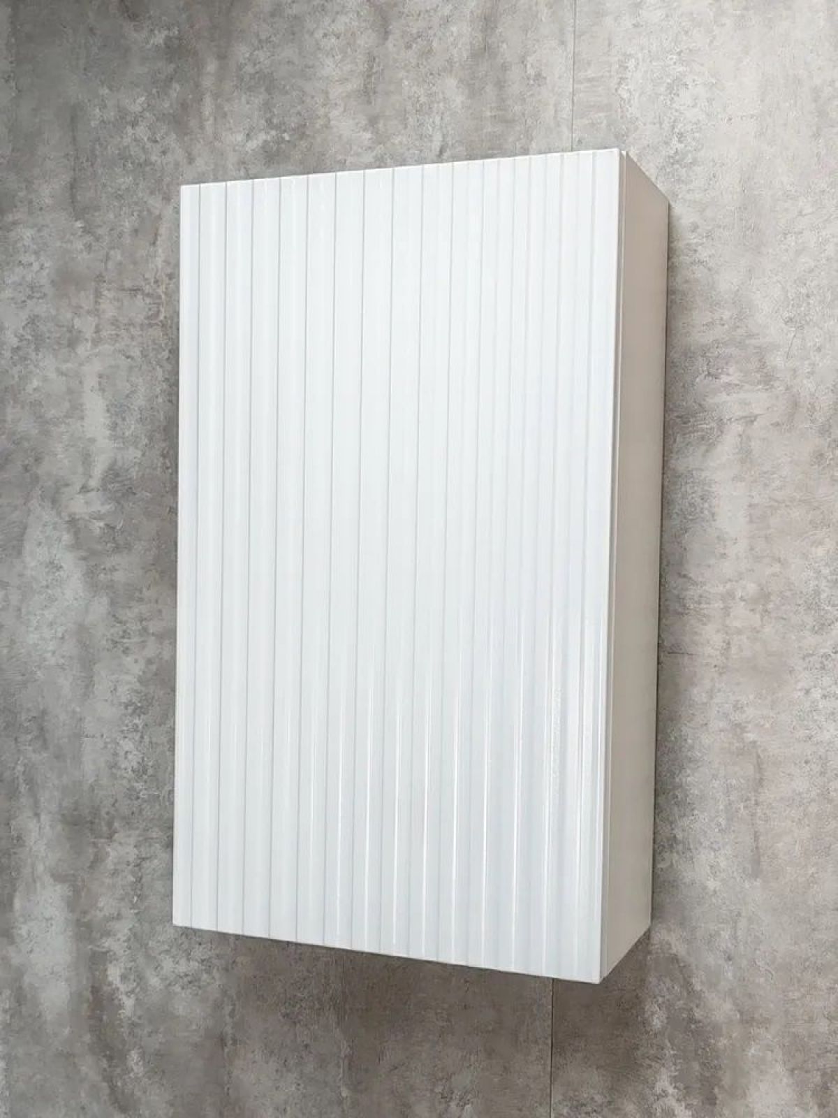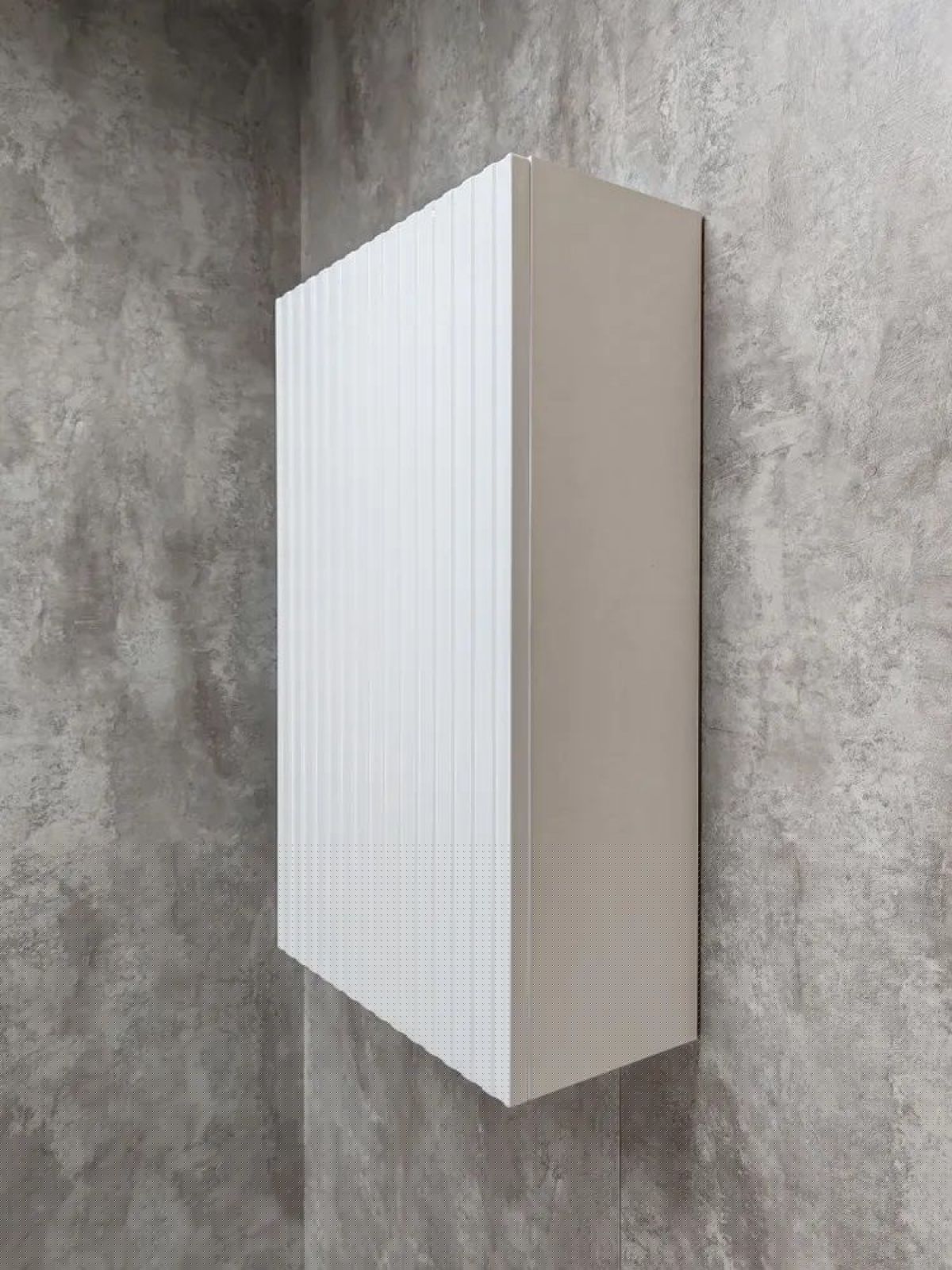 Белый шкаф с рифлёным фасадом будет отлично и стильно смотреться как в ванной, так и в туалете.