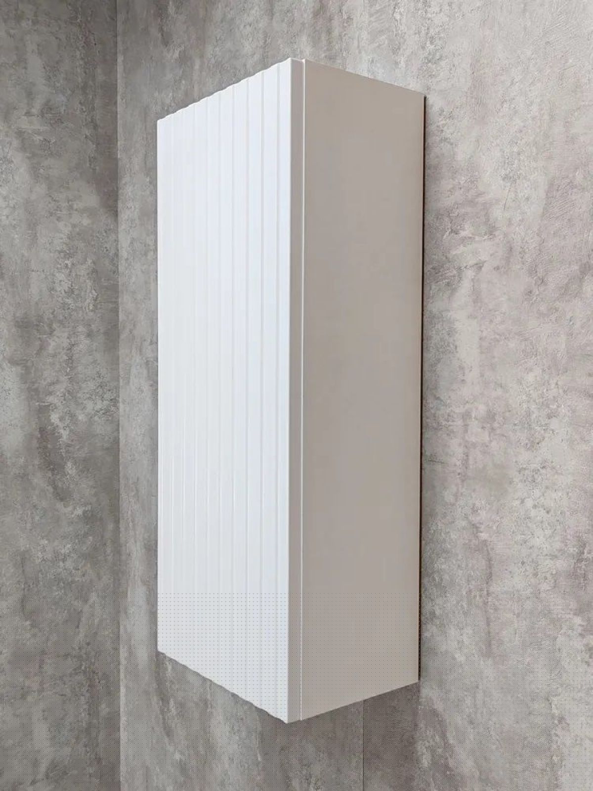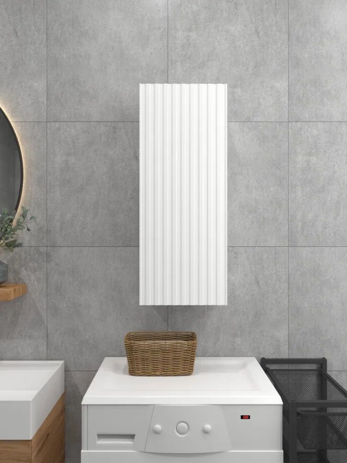 Белый шкаф с рифлёным фасадом будет отлично и стильно смотреться как в ванной, так и в туалете.