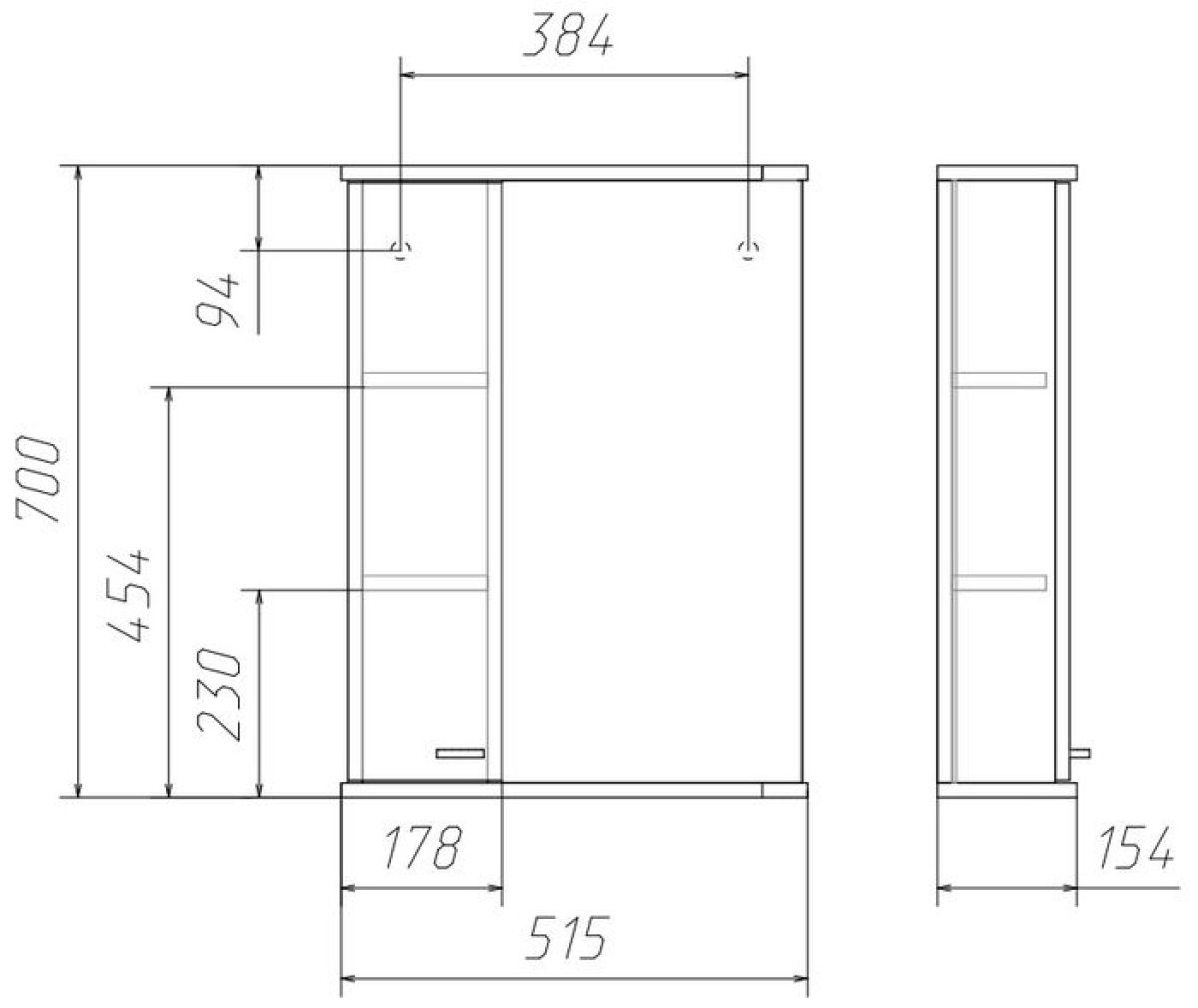 Шкаф-зеркало Классик 50 левый АЙСБЕРГ