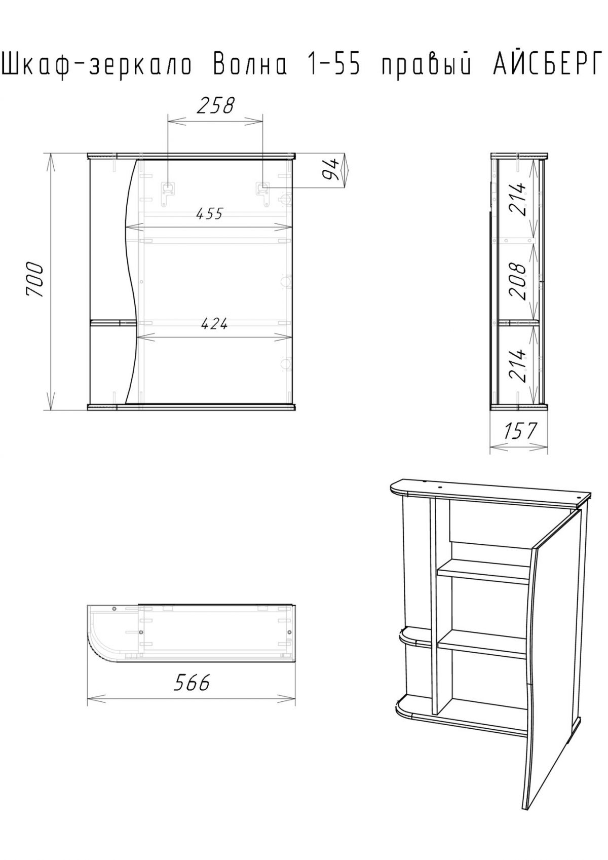 Шкаф-зеркало Волна 1-55 правый АЙСБЕРГ (DA1033HZ)