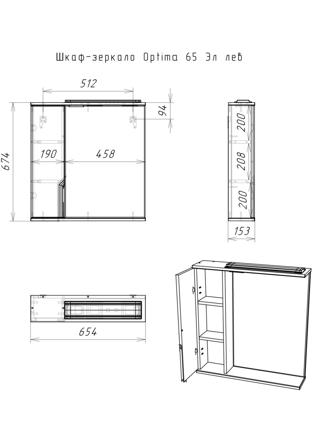 Шкаф-зеркало Optima 65 Эл. левый глянец Домино (DO1906HZ)