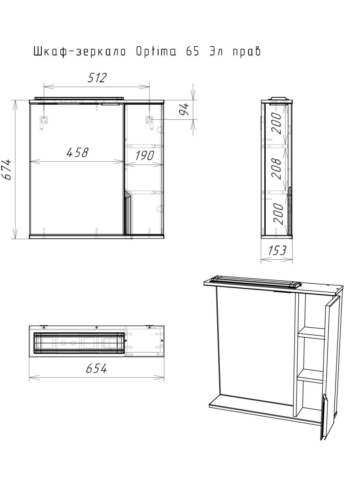 Шкаф-зеркало Optima 65 Эл. правый глянец Домино (DO1907HZ)
