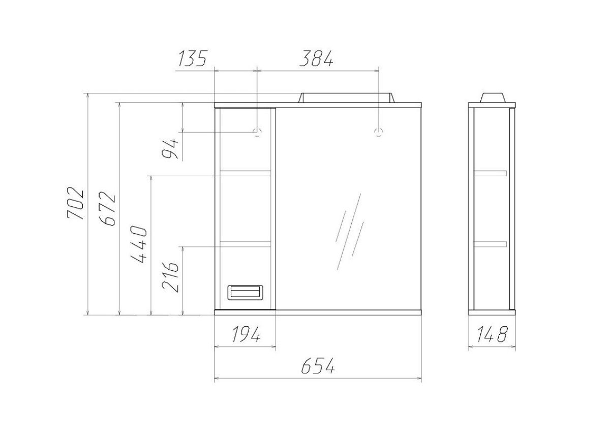 Размер (Ш*Г*В): 654*148*702 мм