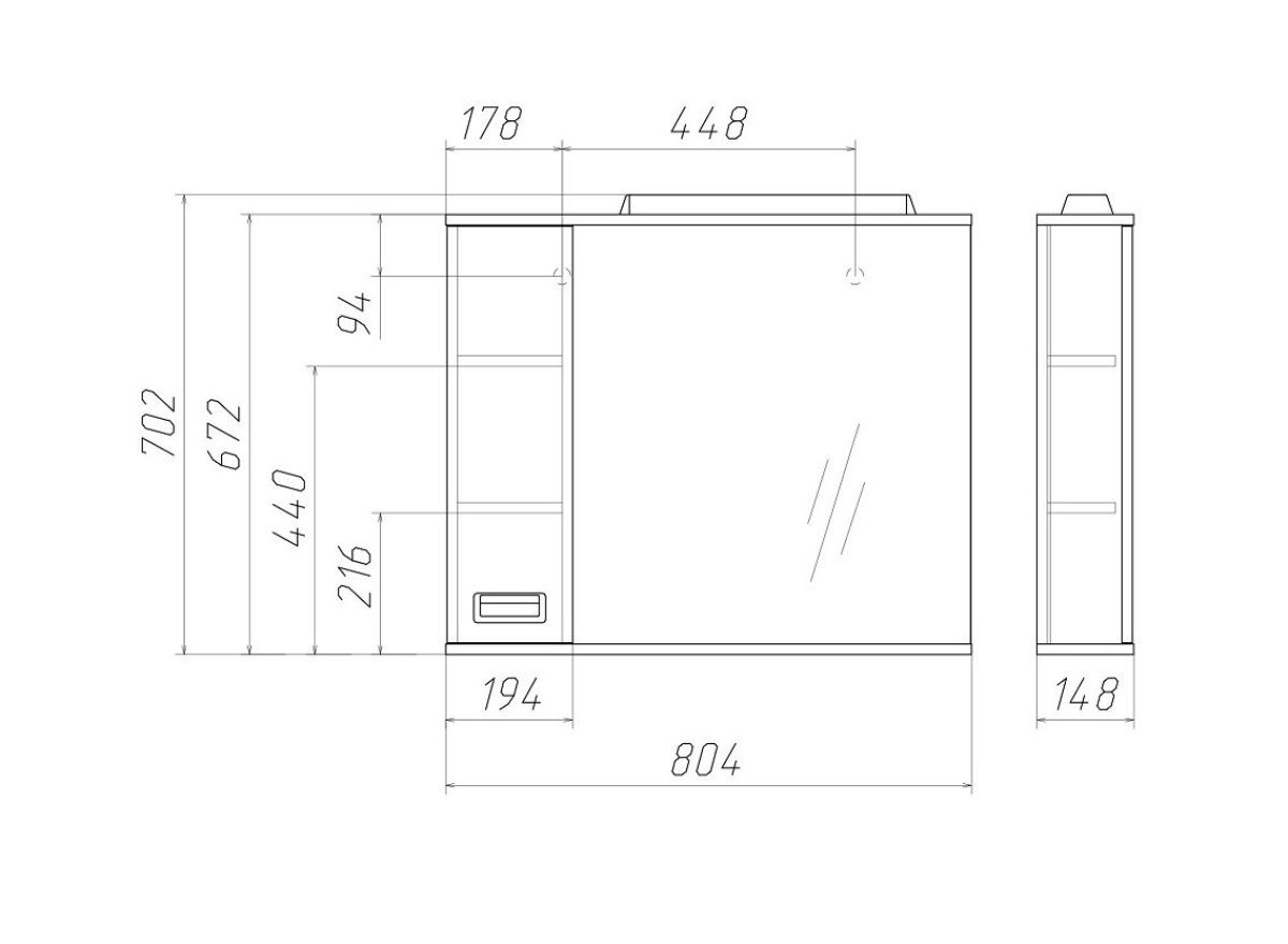 Шкаф-зеркало Cube 80 Эл. ЛЕВЫЙ Домино