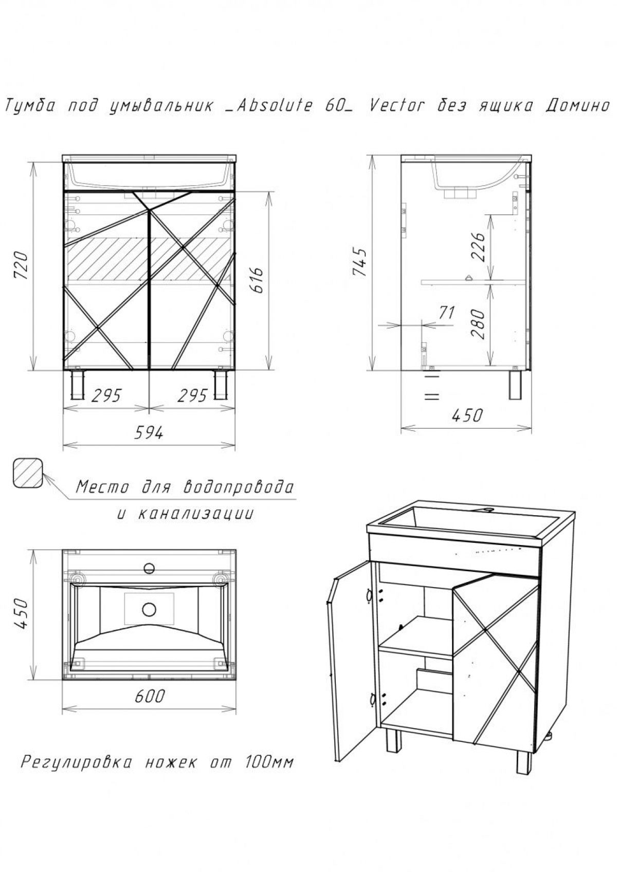 Тумба под умывальник "UNIT 60" Vector без ящика Домино (DV6603T)