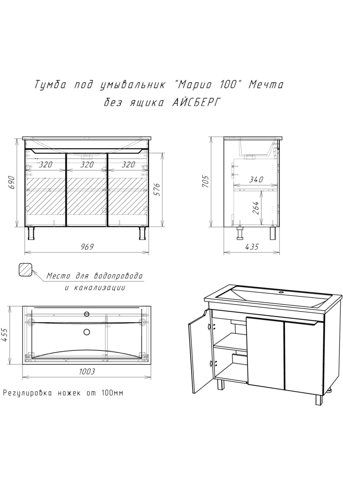 Тумба под умывальник "Maria 100" Мечта без ящика АЙСБЕРГ (DM2327T)