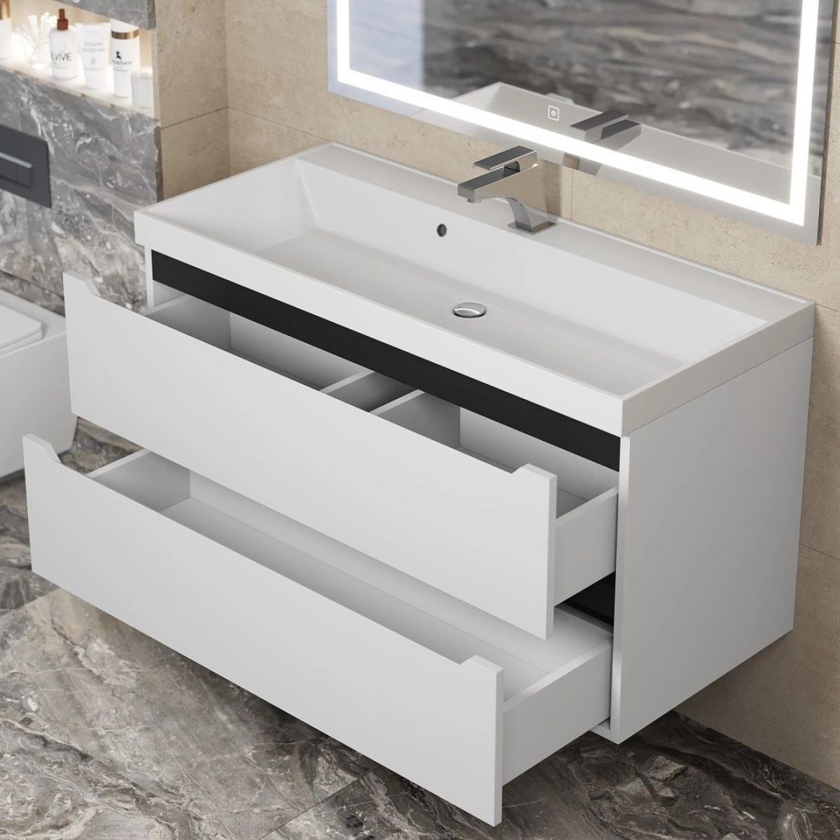 Тумба под раковину Uperwood Tanos 100 см, подвесная, белая/графит
