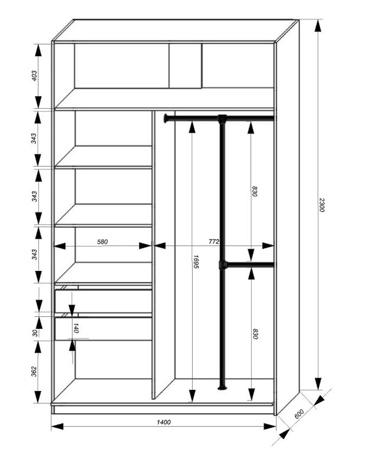 Размер (Ш*Г*В): 1400*600*2300 мм
