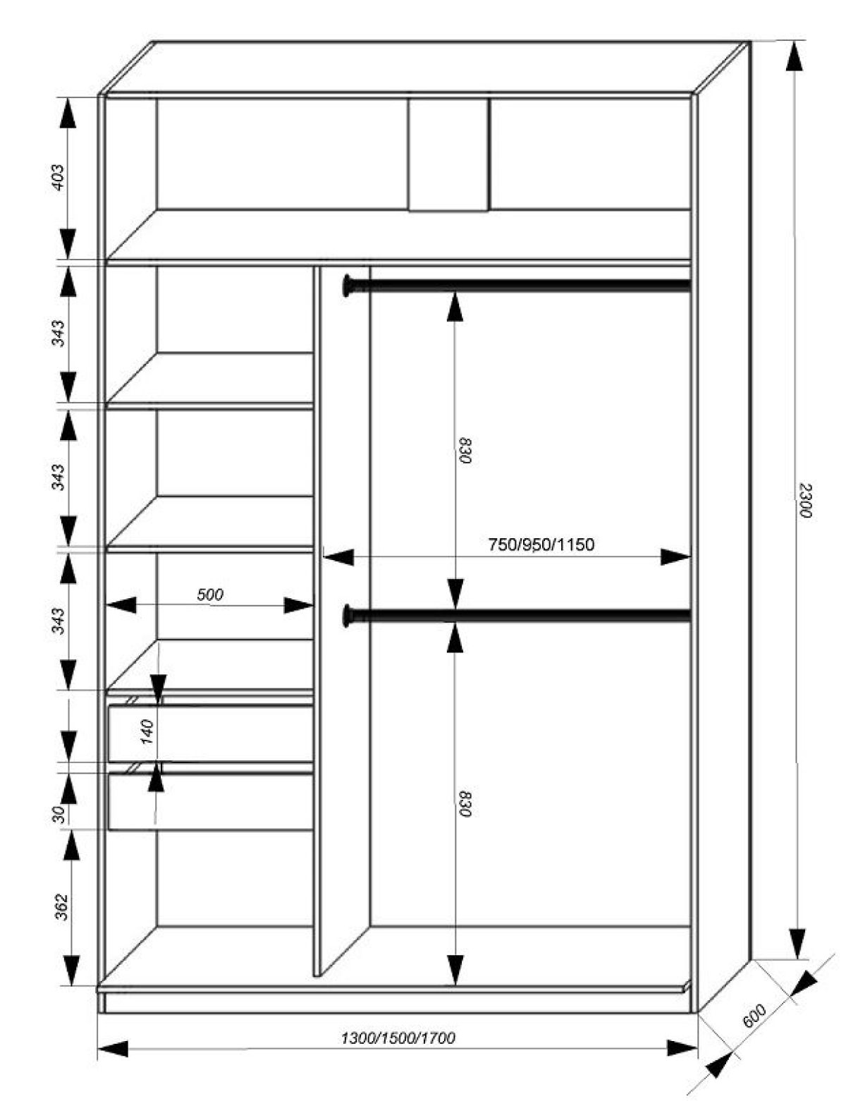 Размер (Ш*Г*В): 1500*600*2300 мм